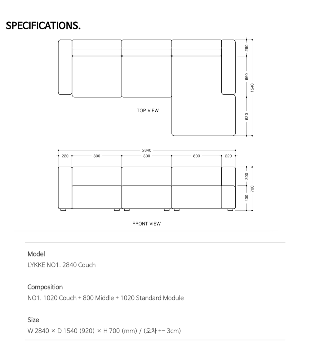 Size - W 2840 X D 1540 (920) X H 700 (mm)