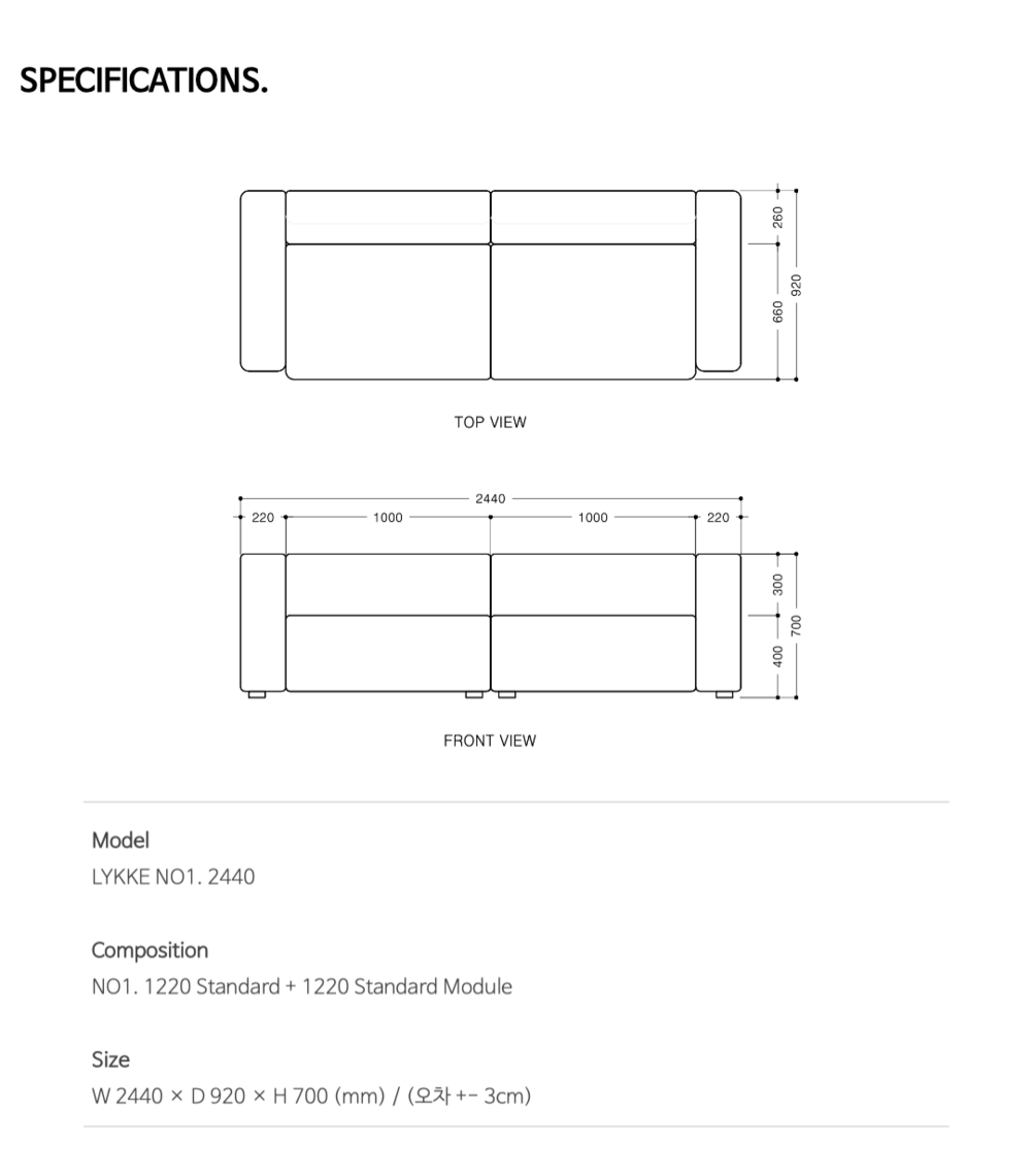 Size - W 2440 X D 920 X H 700 (mm)