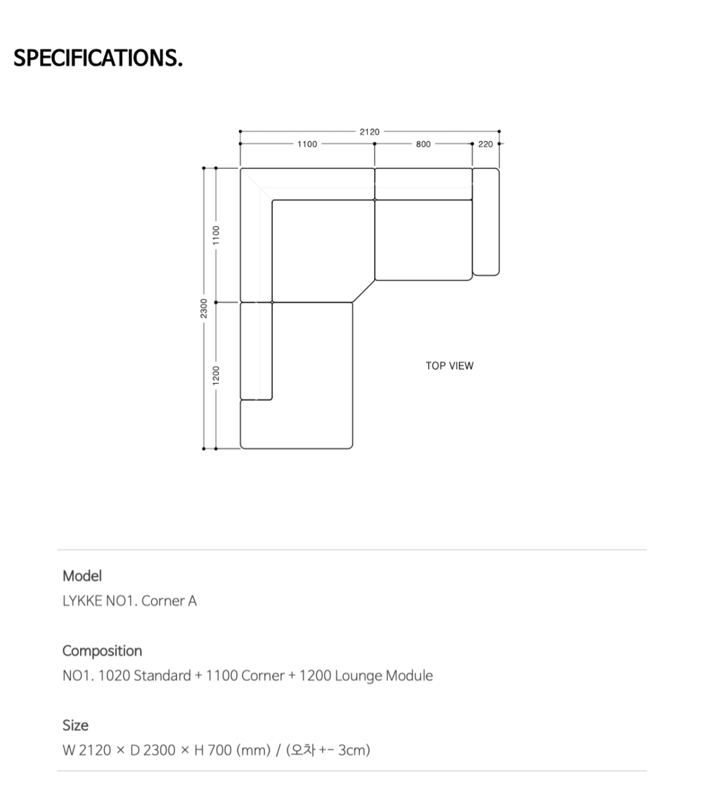 Size - W 2120 (2300) X D 920 X H 700 (mm)