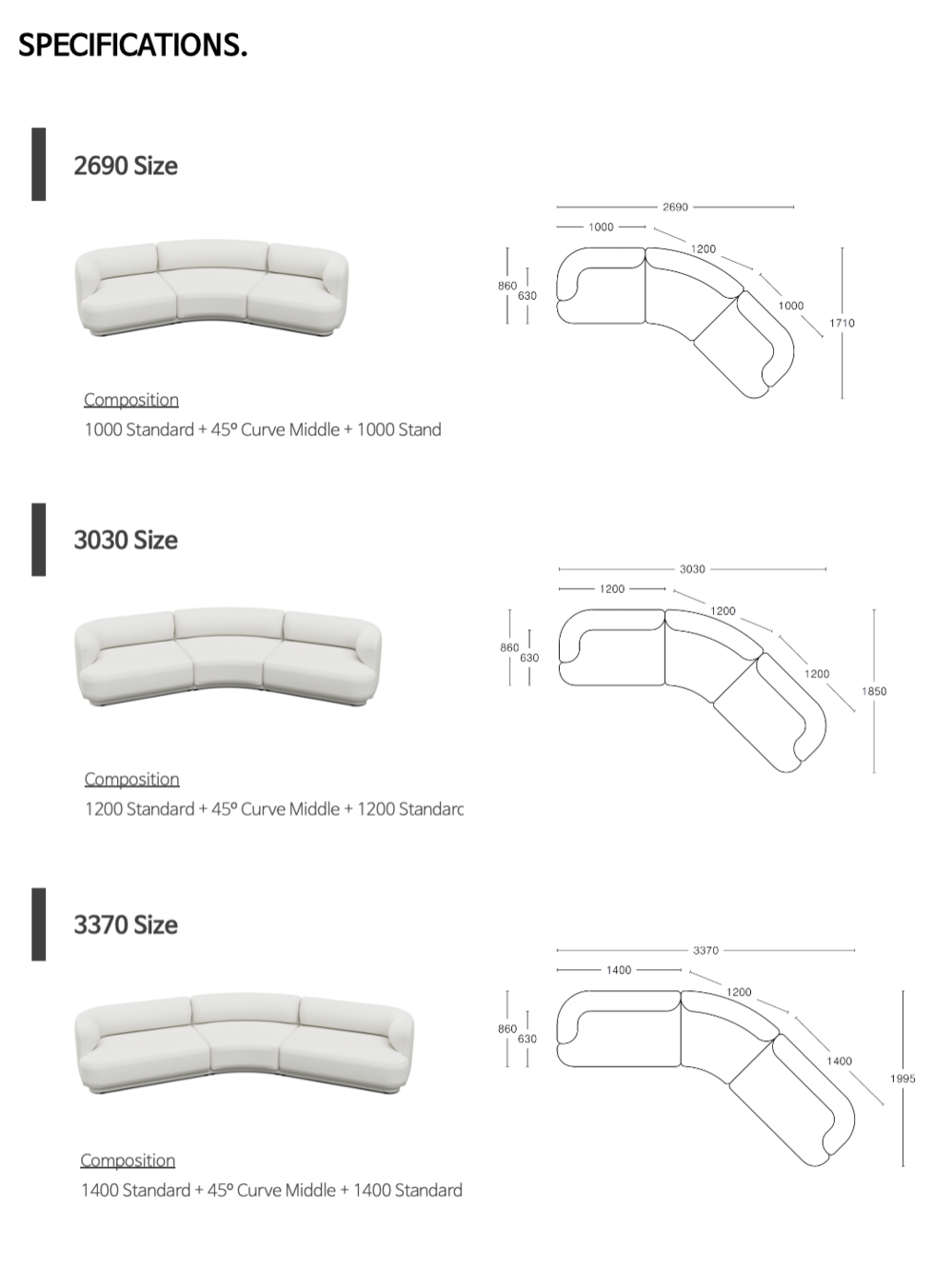 NO6. 45º Curve Sofa(3 Size)