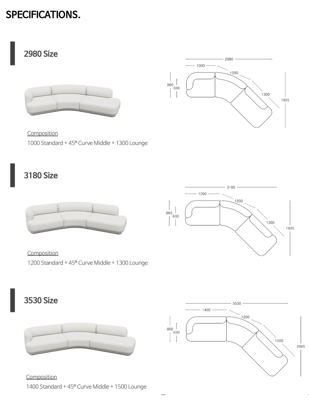 NO6. 45º Curve Lounge Sofa(3 Size)