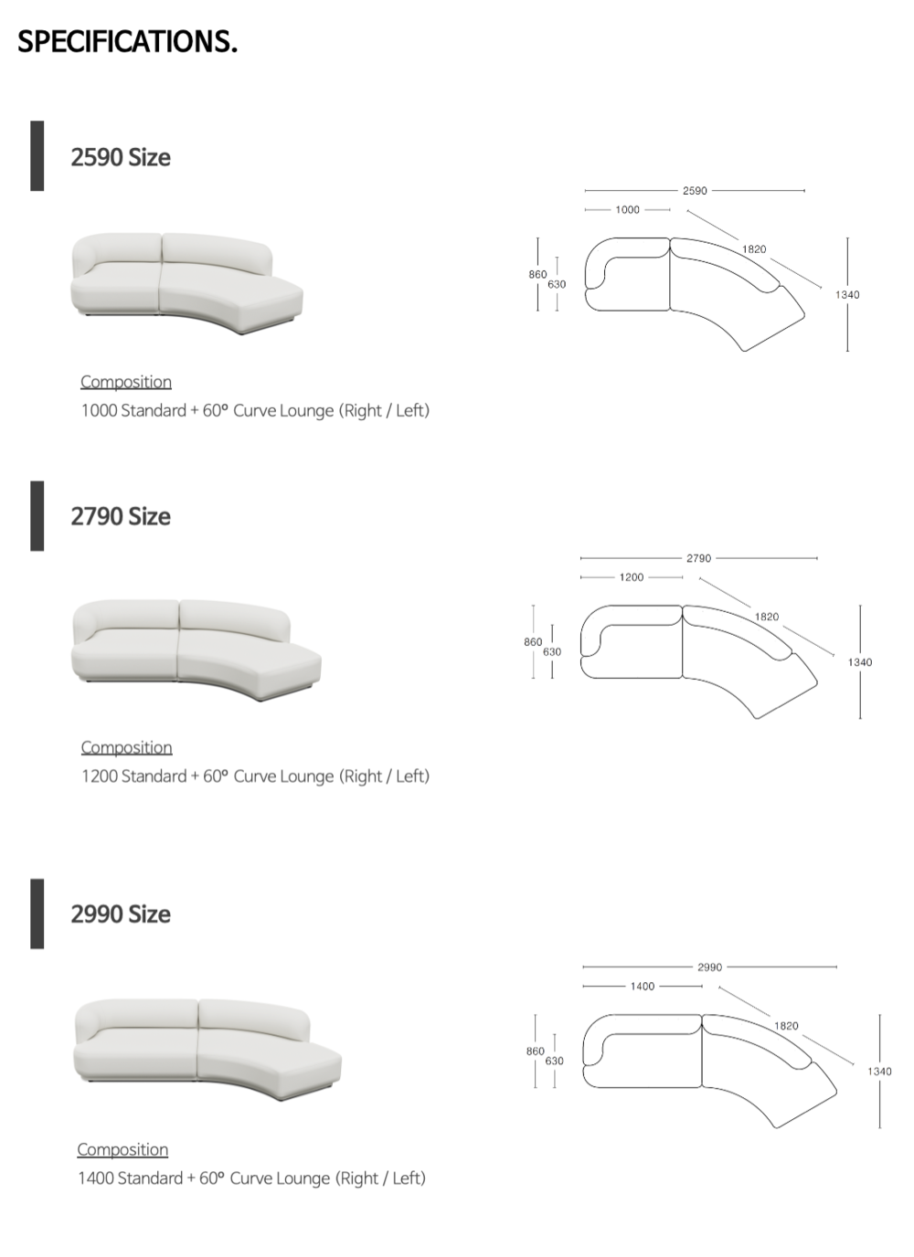 NO6. 60º Curve Lounge Sofa(3 Size)