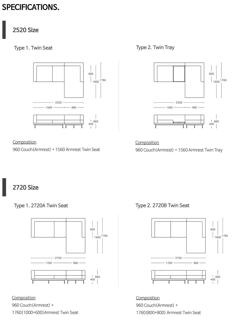 No9. 2유닛 960 암레스트 카우치 소파(암레스트)