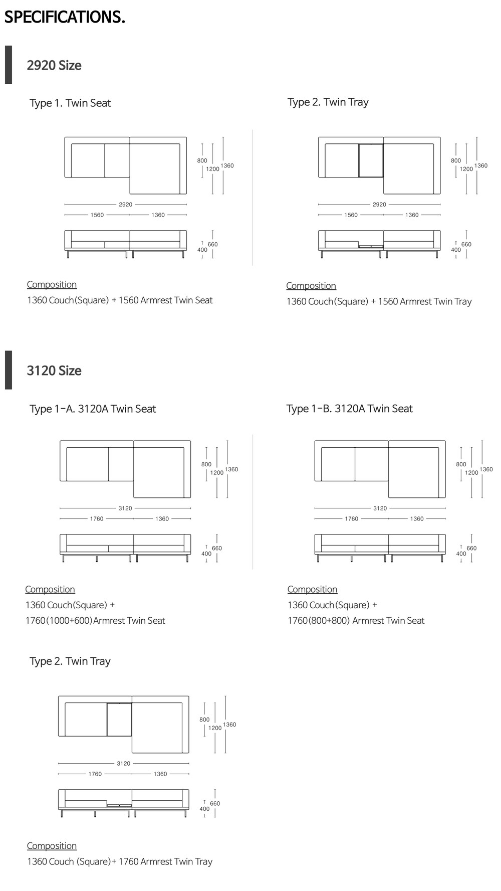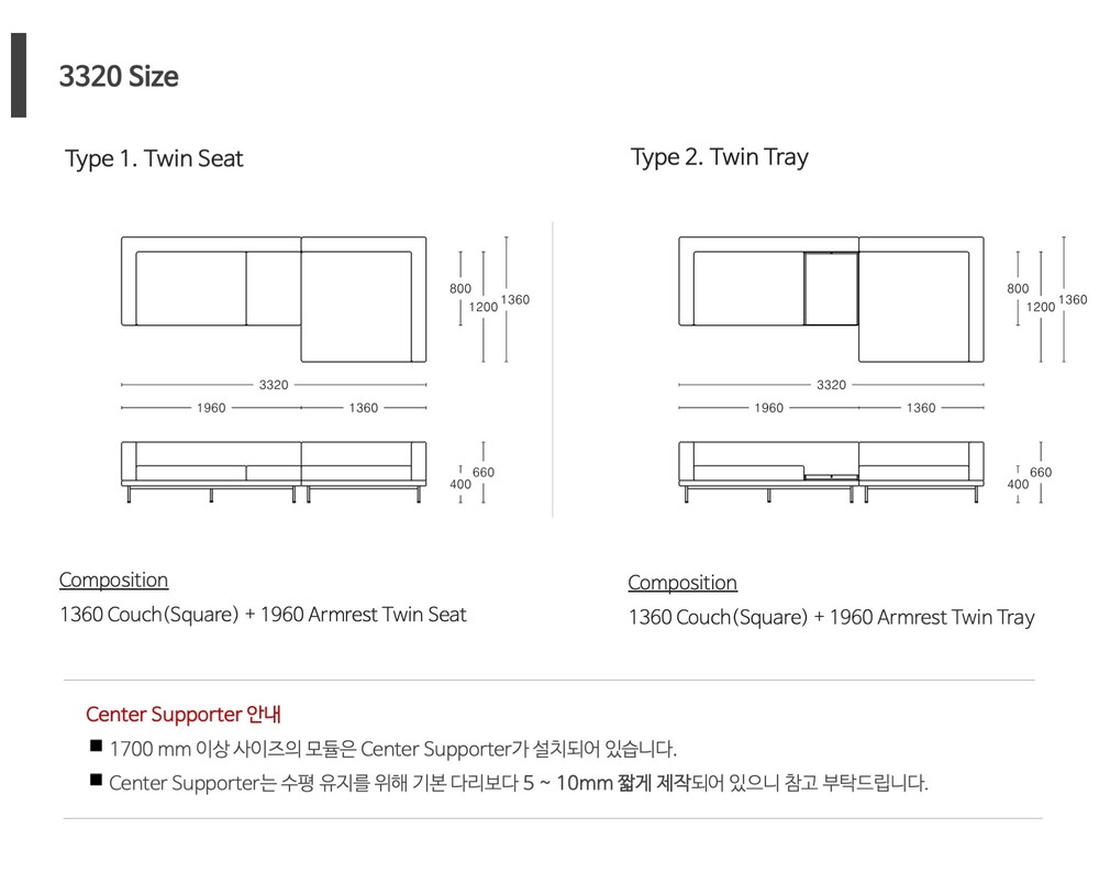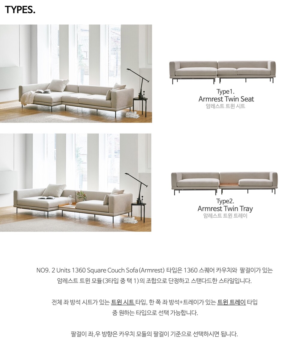 No9. 2유닛 1360 스퀘어 카우치 소파(암레스트)