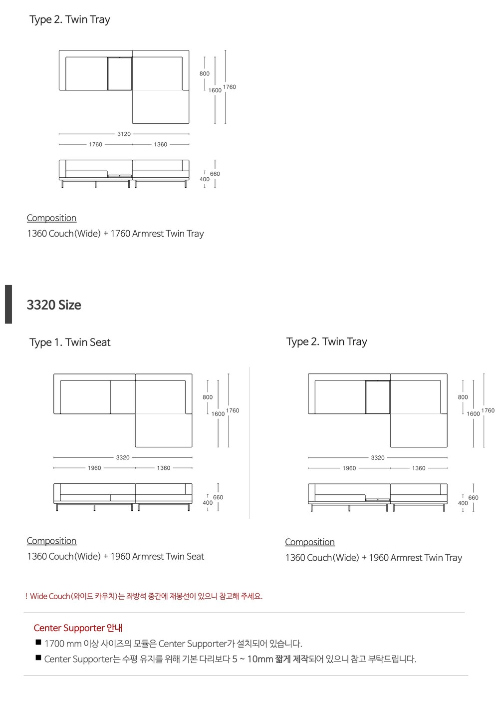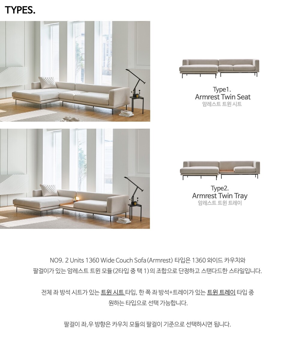 No9. 2 유닛 1360 와이드 카우치 소파(암레스트)