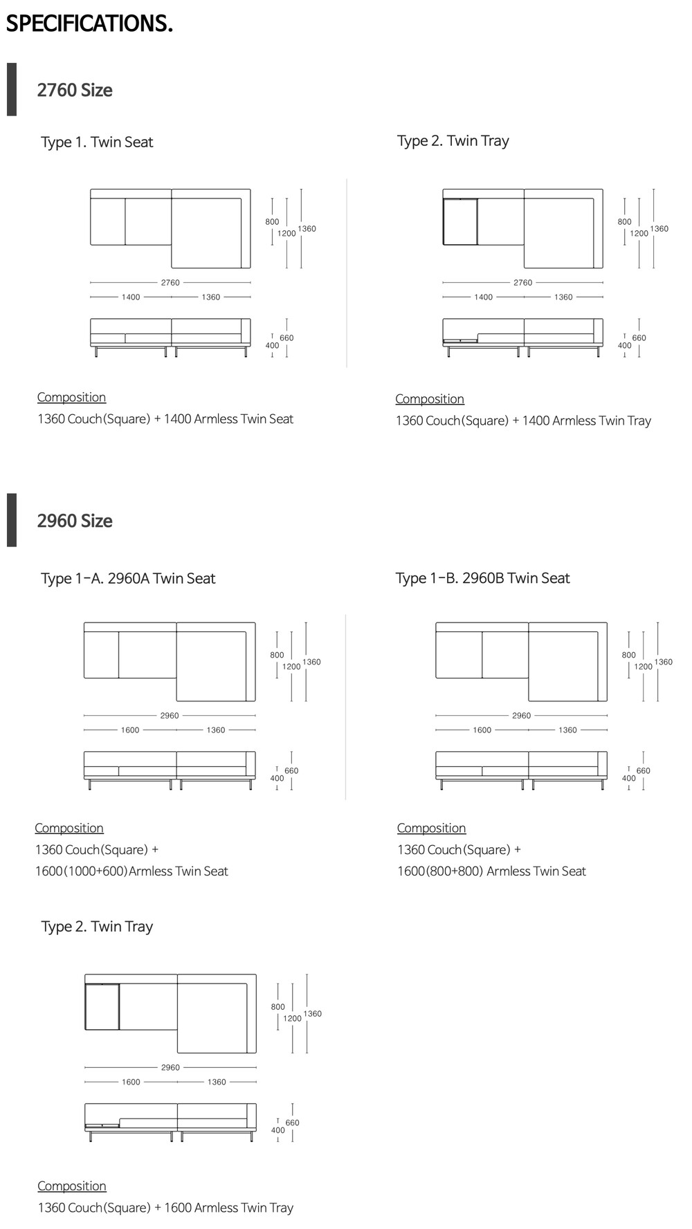 No9. 2유닛 1360 스퀘어 카우치 소파(암리스)