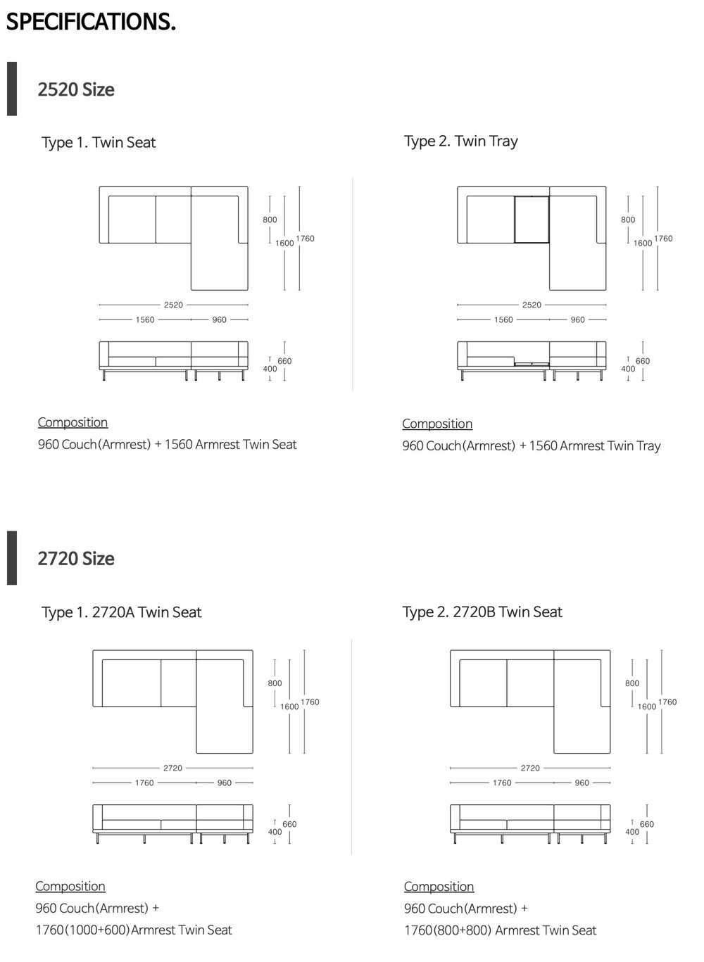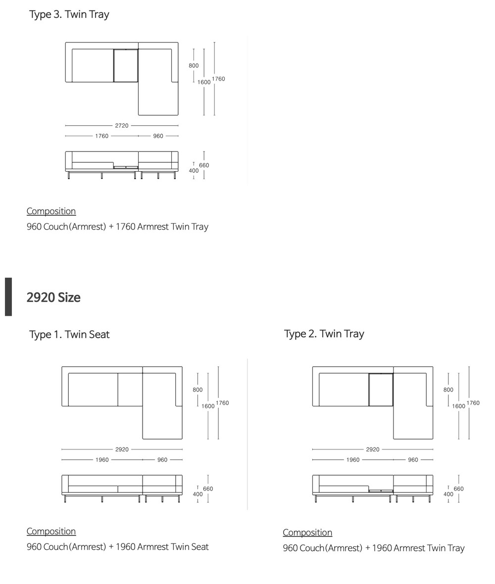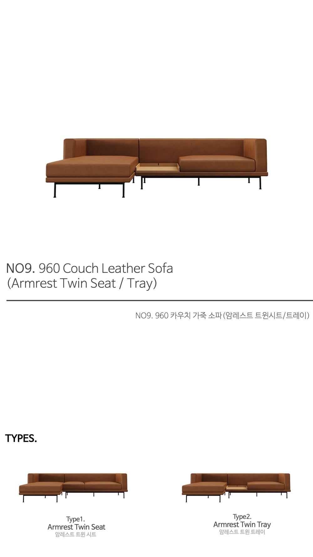 NO9. 960 Couch Leather Sofa(Armrest Twin Seat/ Tray)
