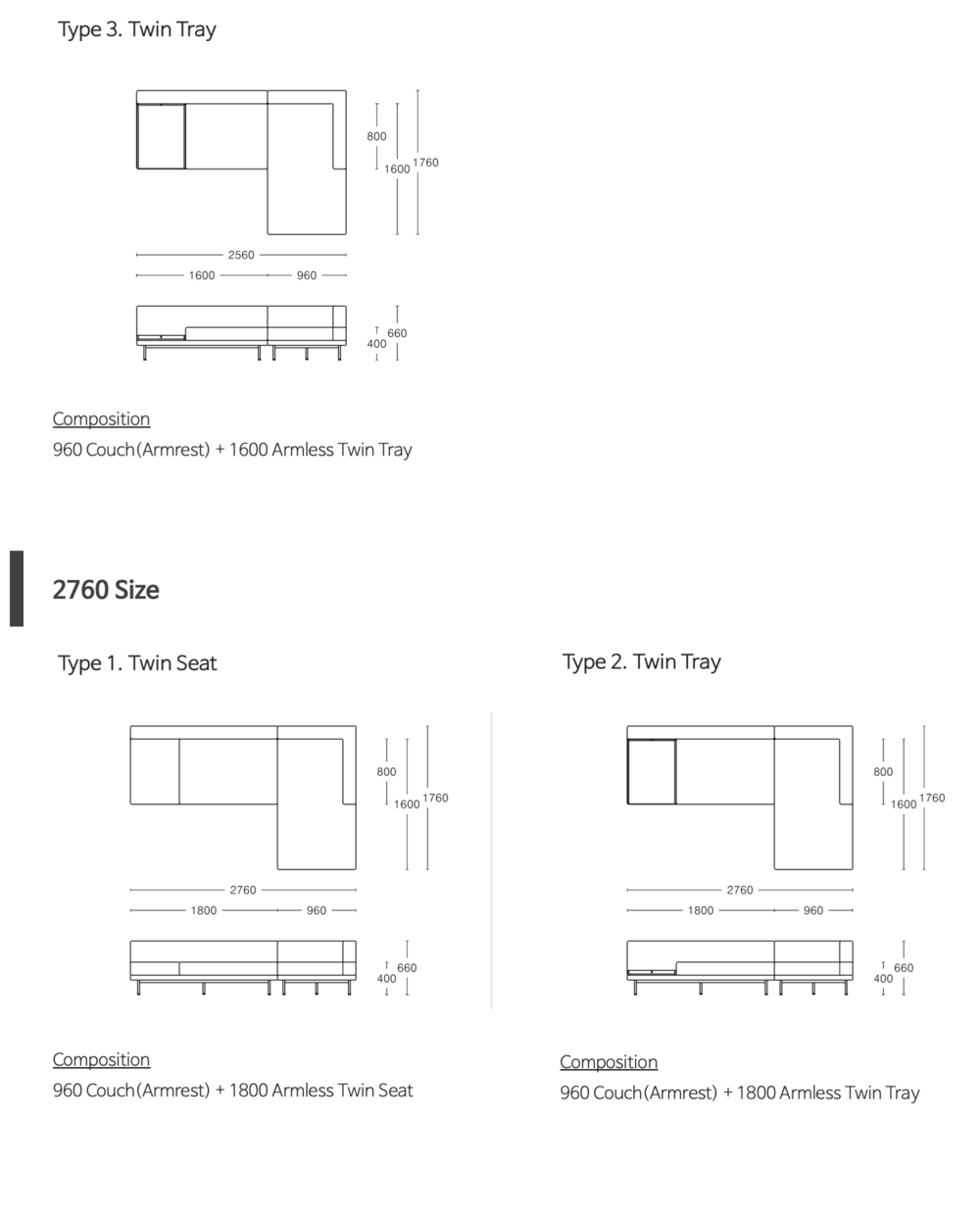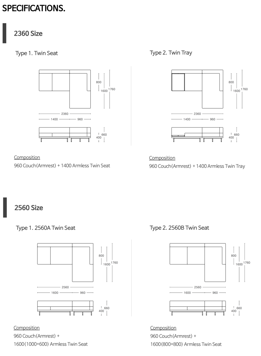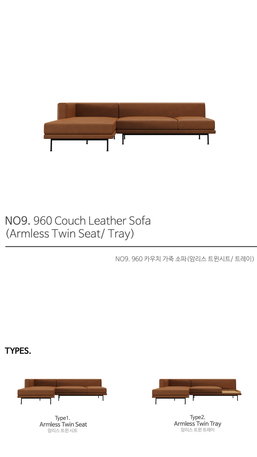 NO9. 960 Couch Leather Sofa(Armless Twin Seat/ Tray)