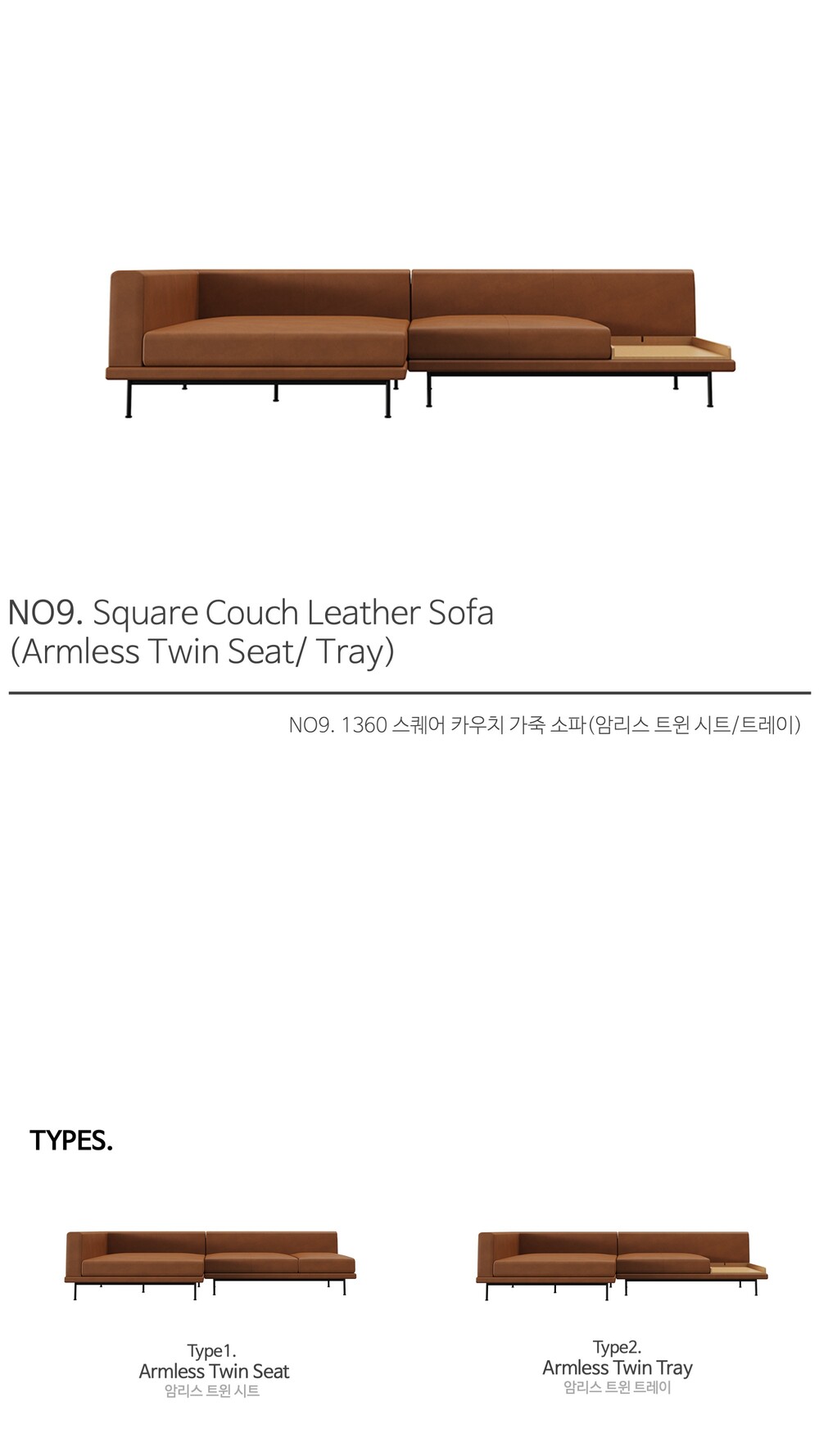 NO9. Square Couch Leather Sofa(Armless Twin Seat/ Tray)