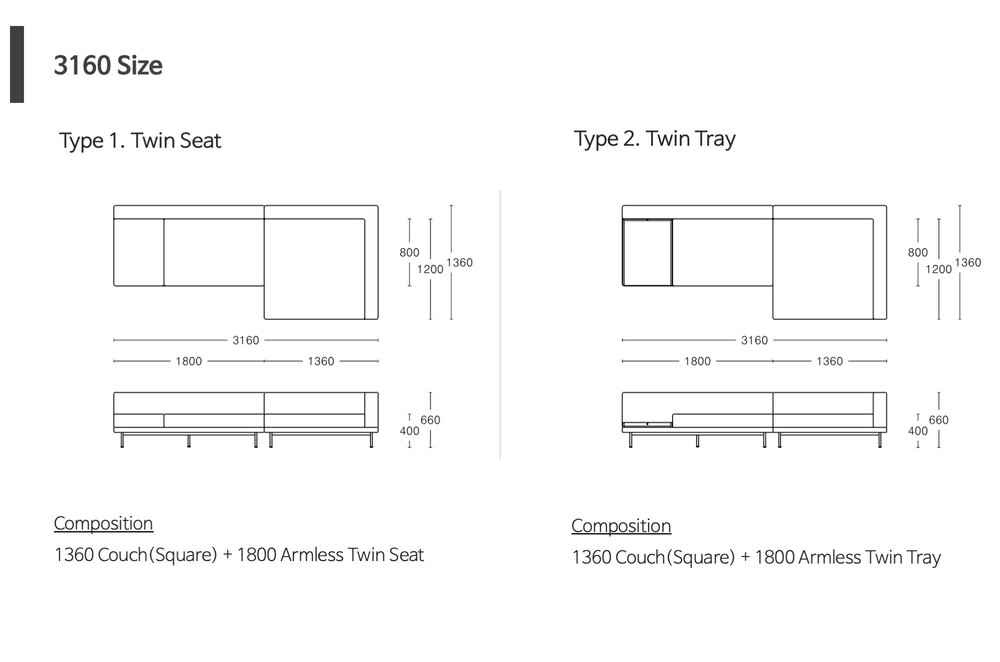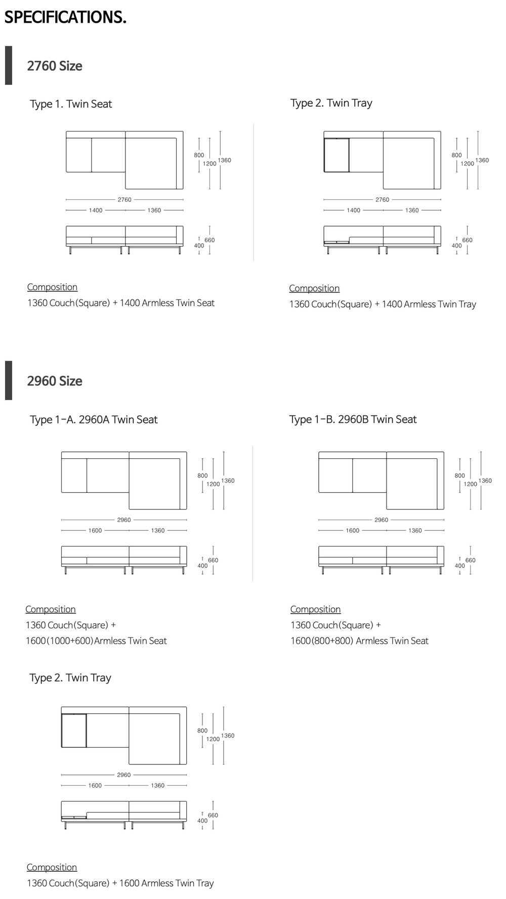 NO9. 스퀘어 카우치 소파(암리스 트윈시트/트레이)