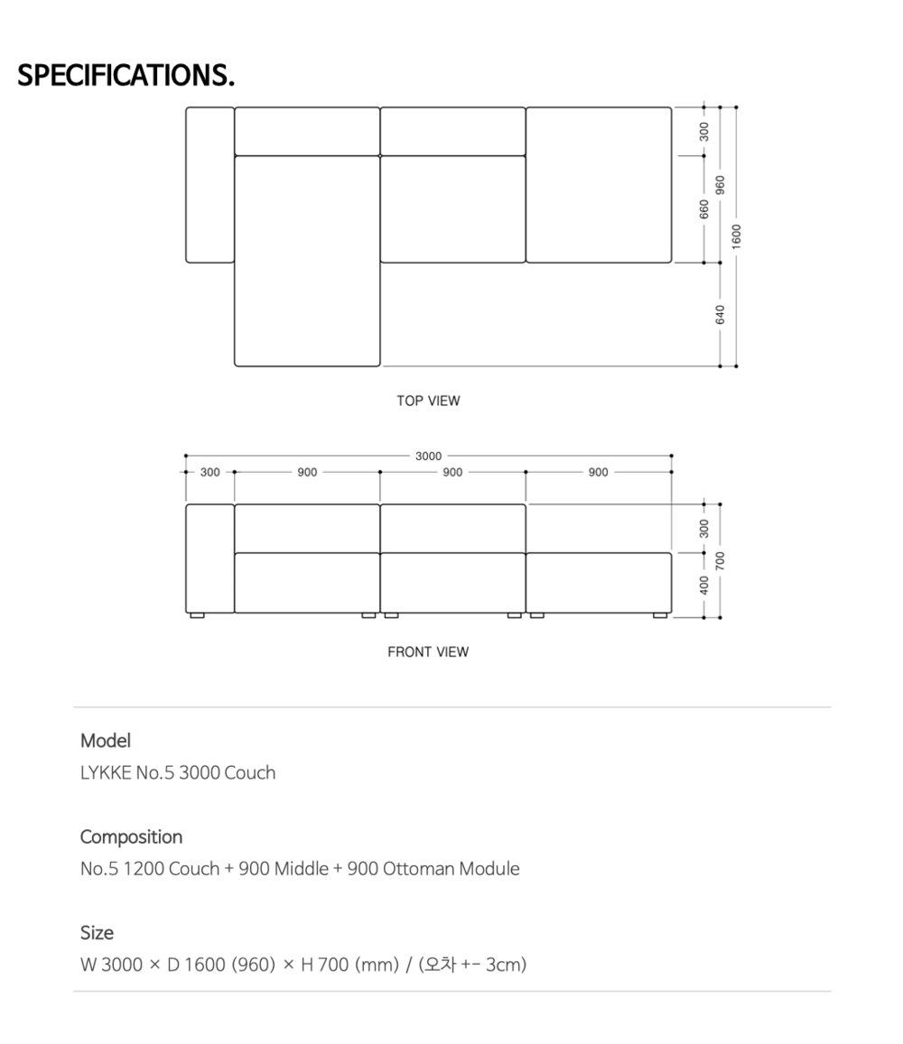 Size - W 3000 X D 1600 (960) X H 700 (mm)
