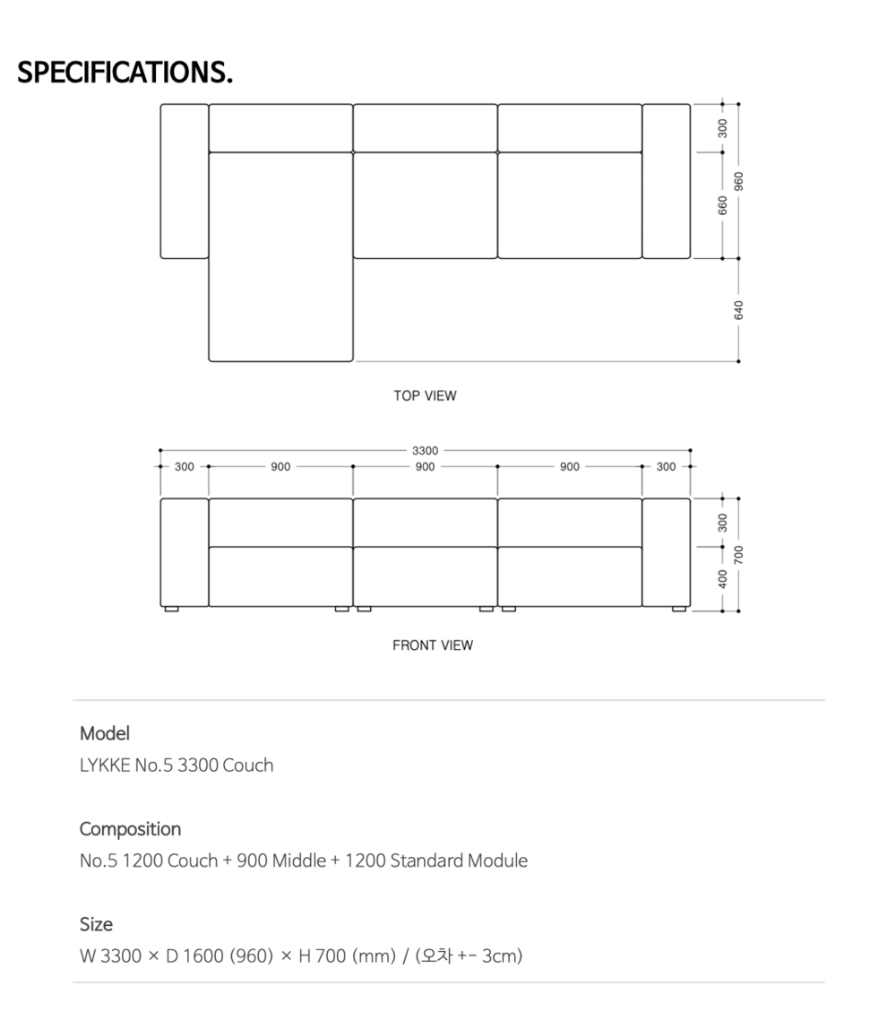 Size - W 3300 X D 1600 (960) X H 700 (mm)