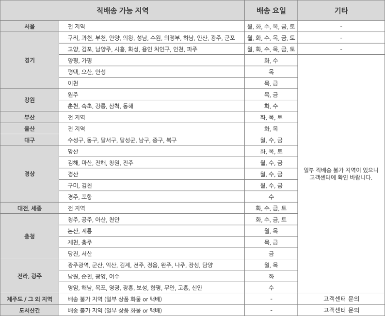 배송가능지역