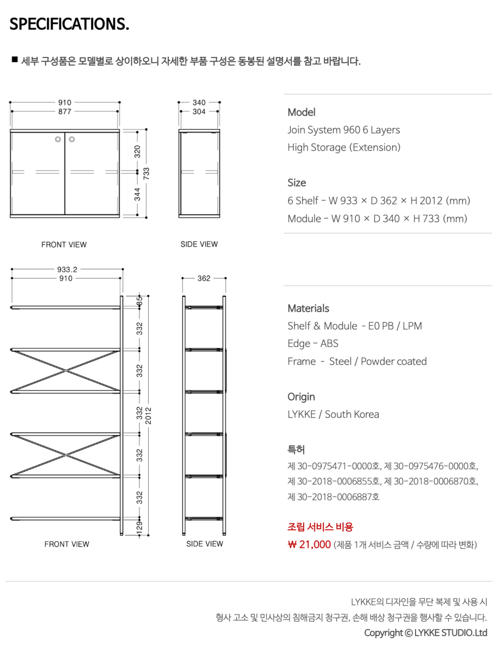조인 시스템 960 6단 선반장(높은수납장)_연결형