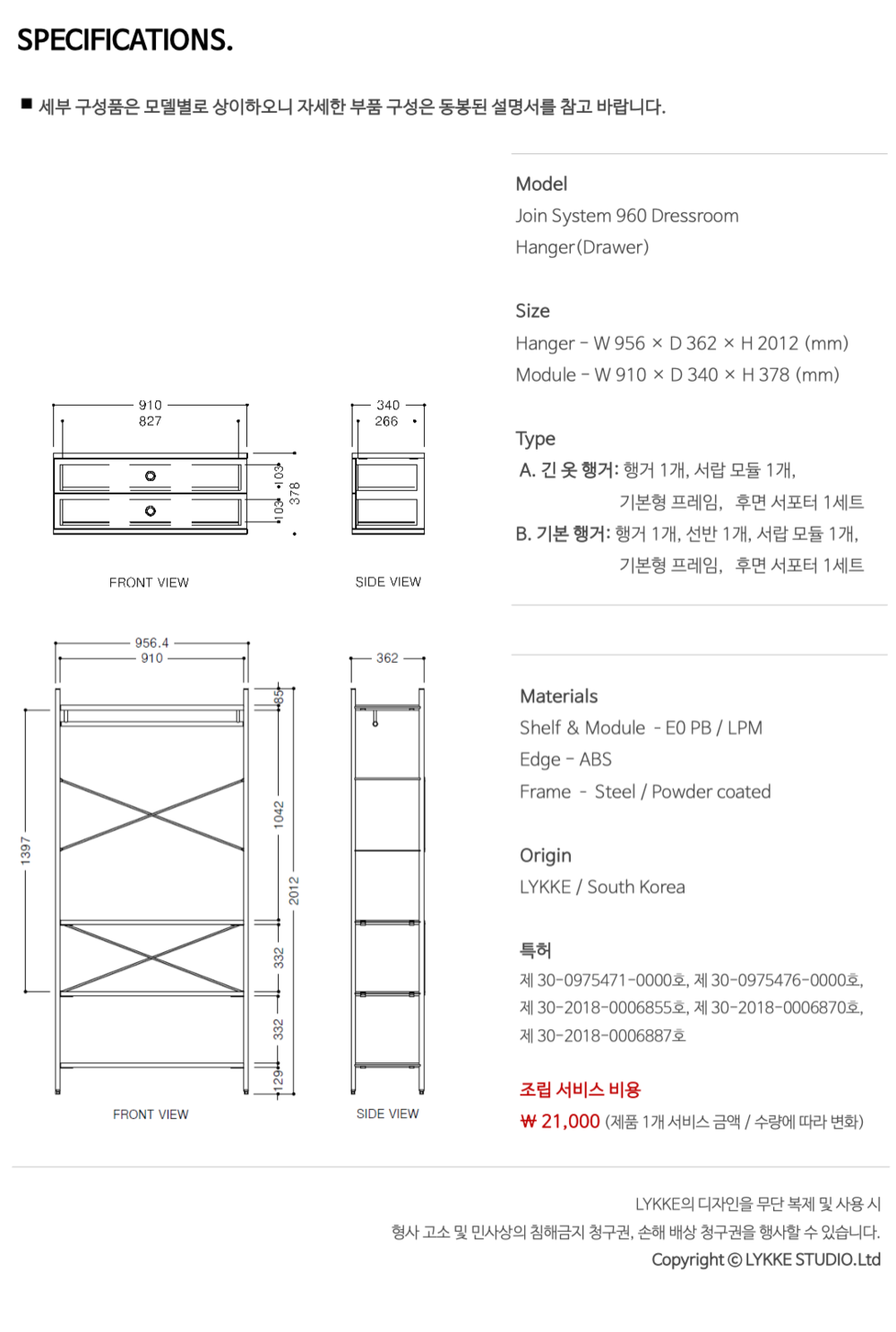 조인 시스템 960 드레스룸 행거(서랍장)