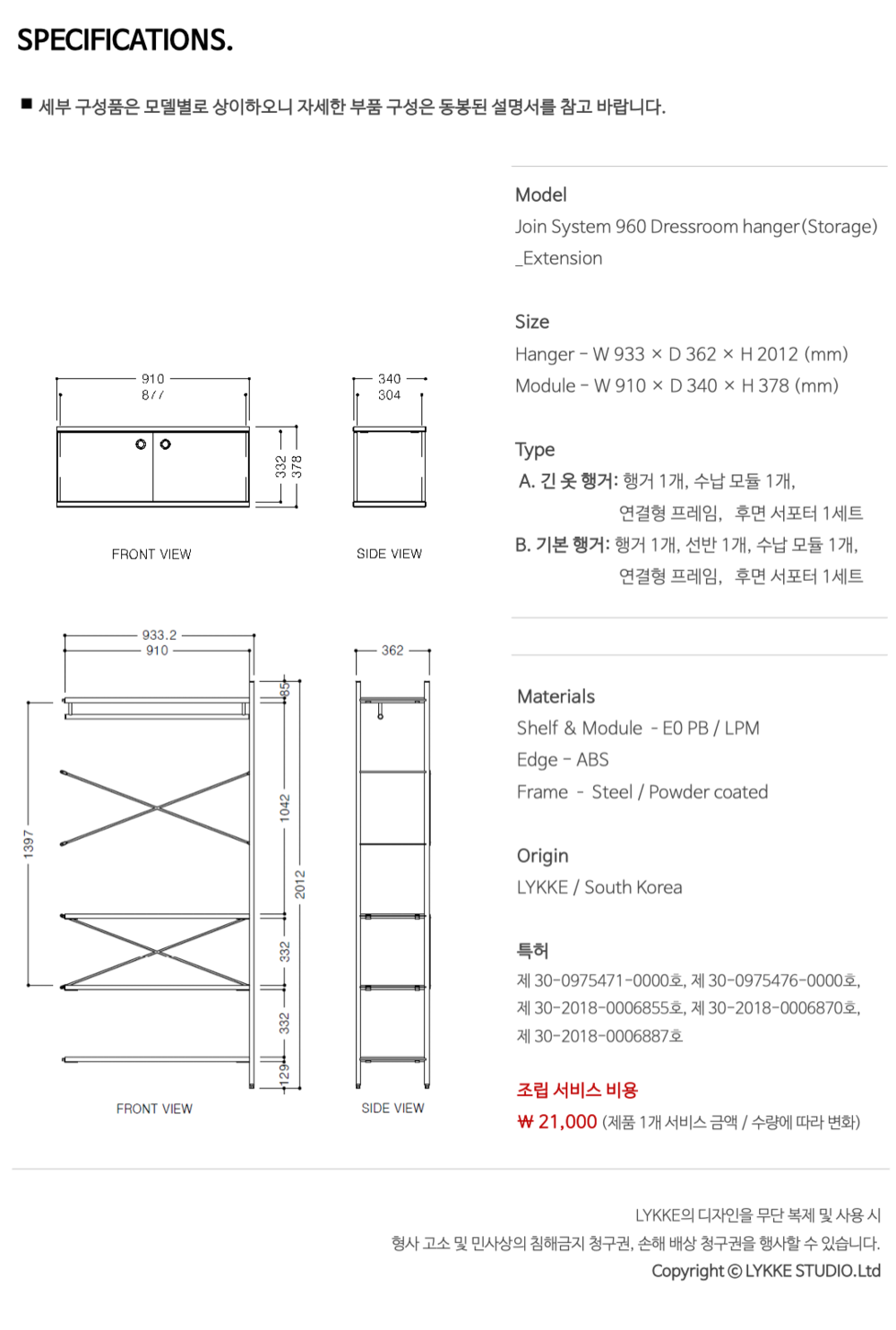 조인 시스템 960 드레스룸 행거_연결형(수납형)