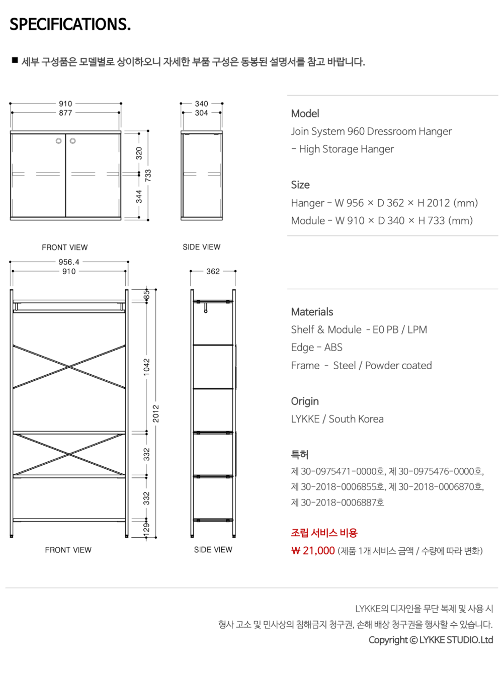 조인 시스템 960 드레스룸 행거(높은수납장)