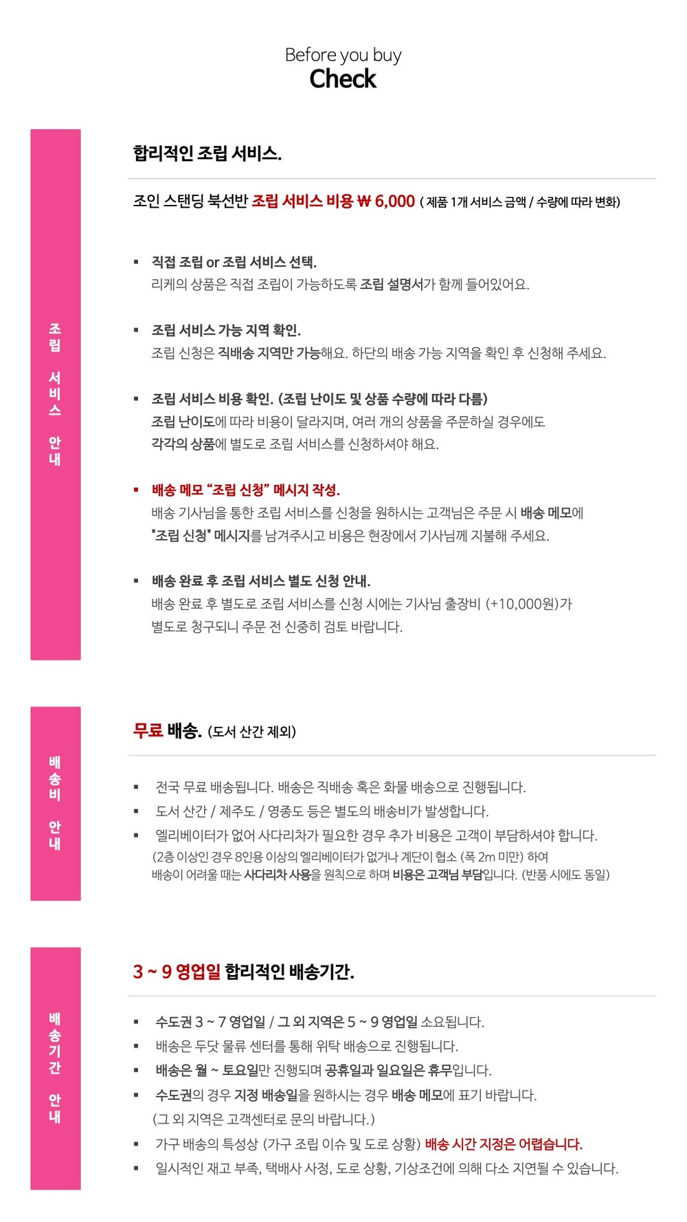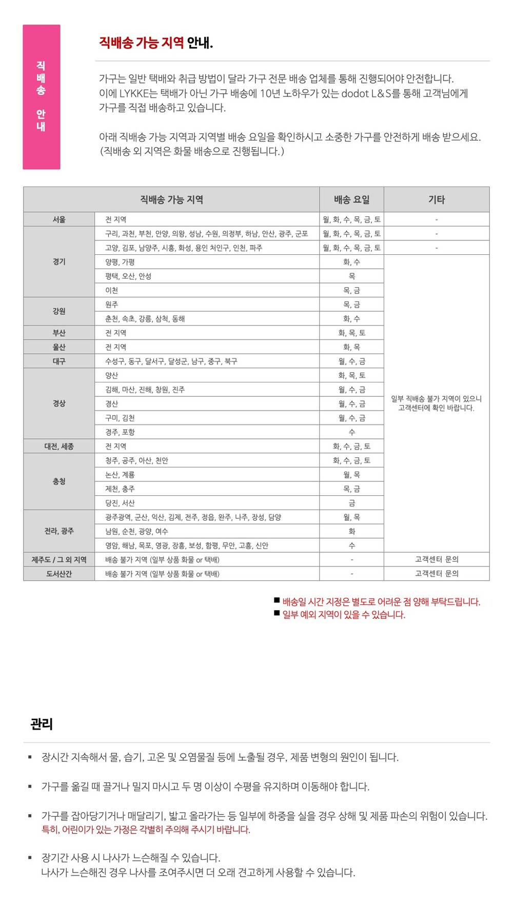 - 현장 직접 수령 또는 용차 배송(비용 고객부담)