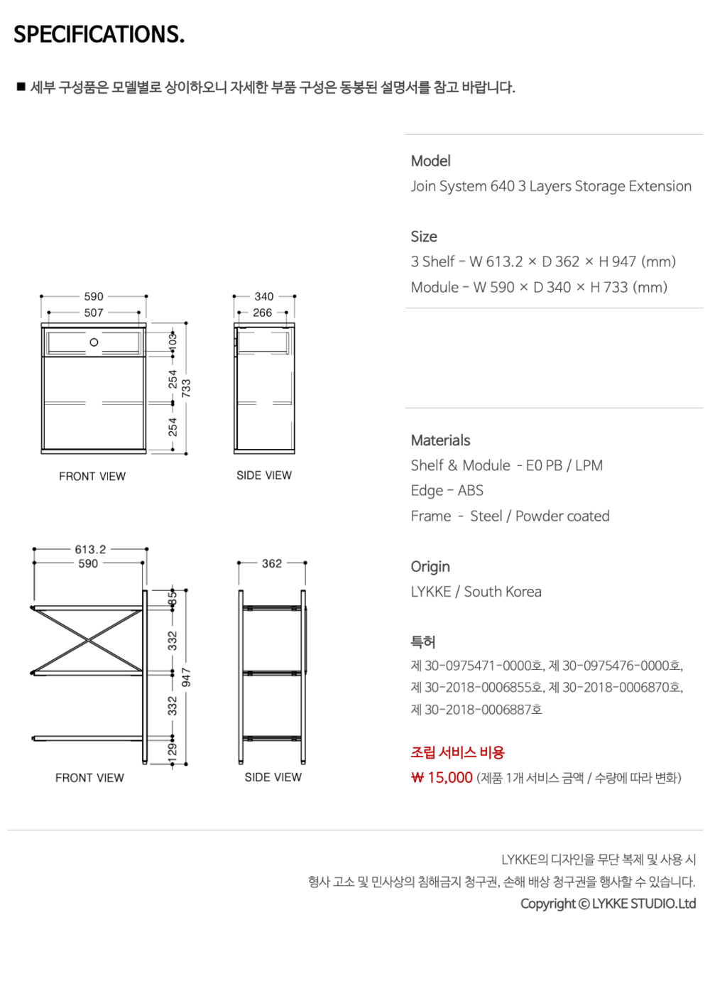 조인 시스템 640 3단 선반장(수납장)_연결형