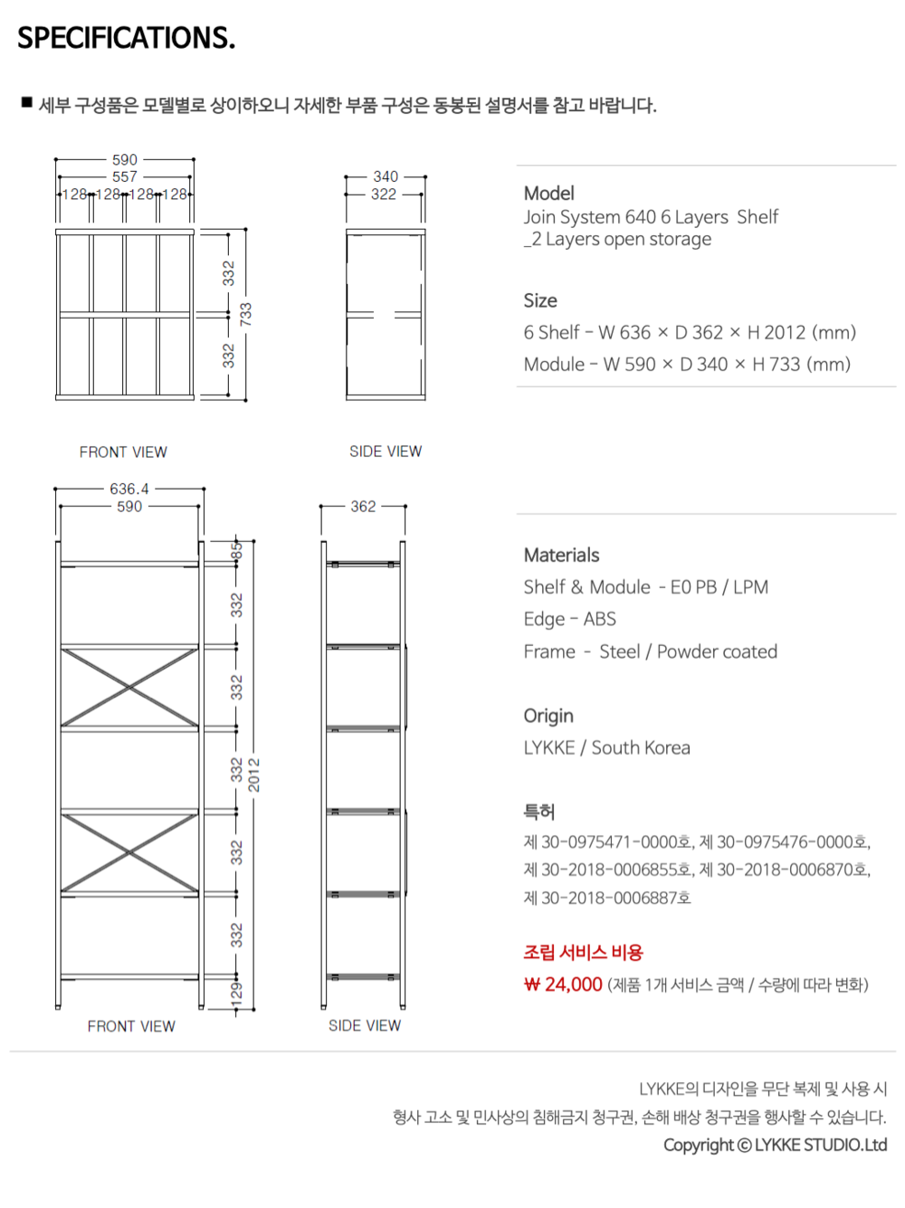 조인 시스템 640 6단 선반장(2단 오픈 수납장)