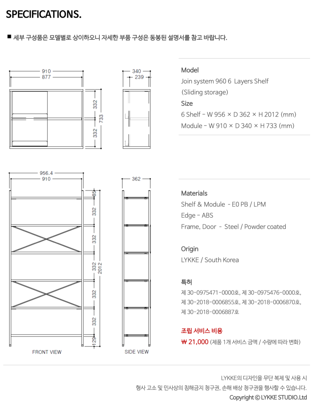 조인 시스템 960 6단 선반장(슬라이딩 수납장)
