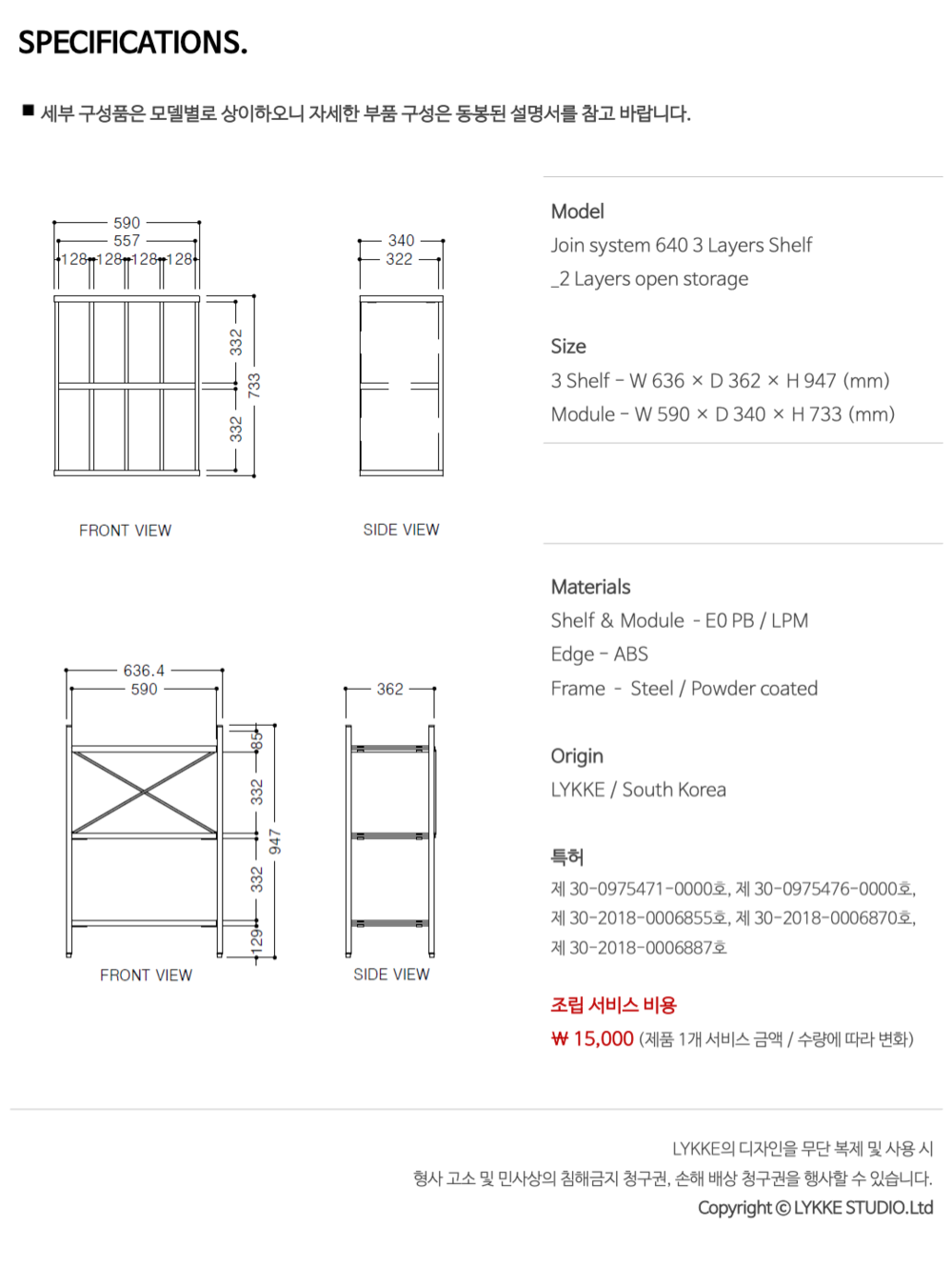 조인 시스템 640 3단 선반장(2단 오픈 수납장)