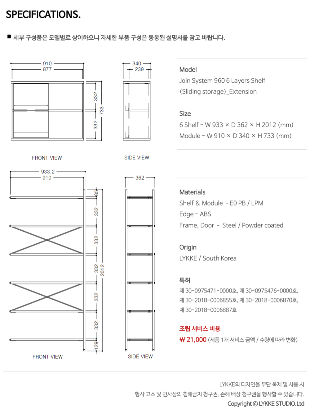 조인 시스템 960 6단 선반장(슬라이딩 수납장)_연결형