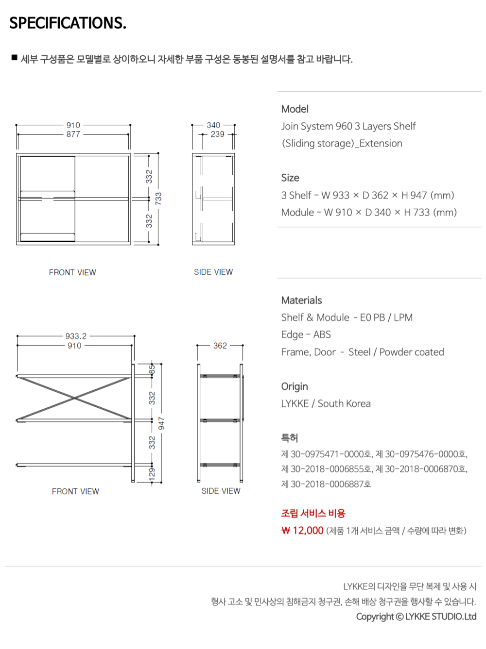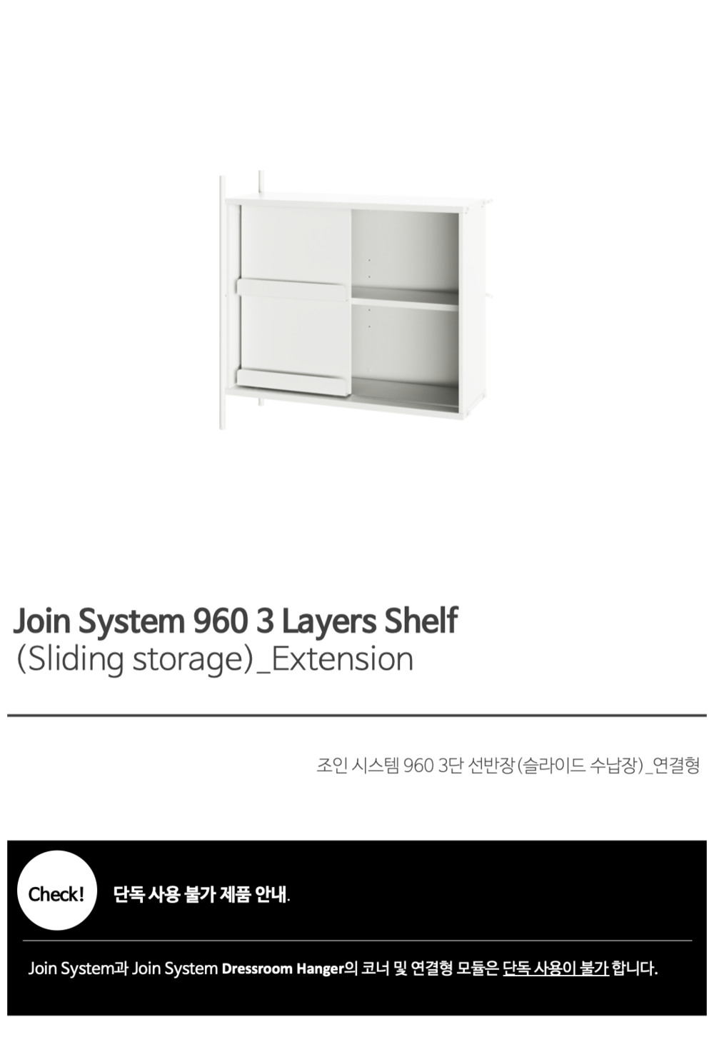 조인 시스템 960 3단 선반장(슬라이딩 수납장)_연결형