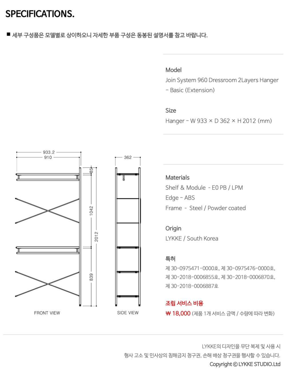 조인 시스템 960 드레스룸 2단 행거_연결형