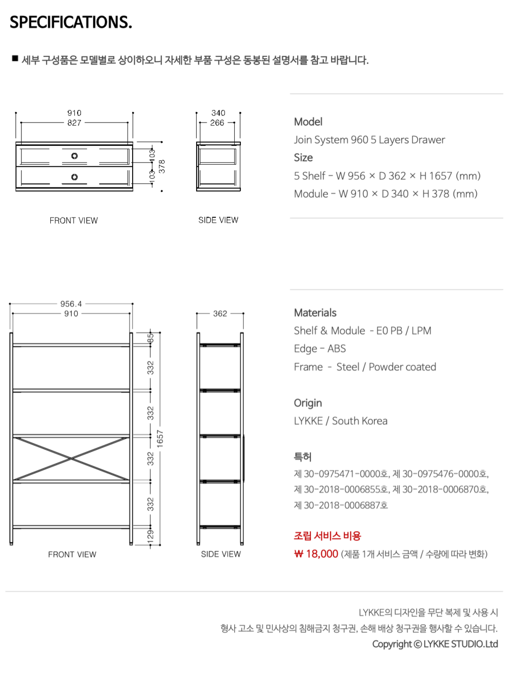 조인 시스템 960 5단 선반장(서랍형)