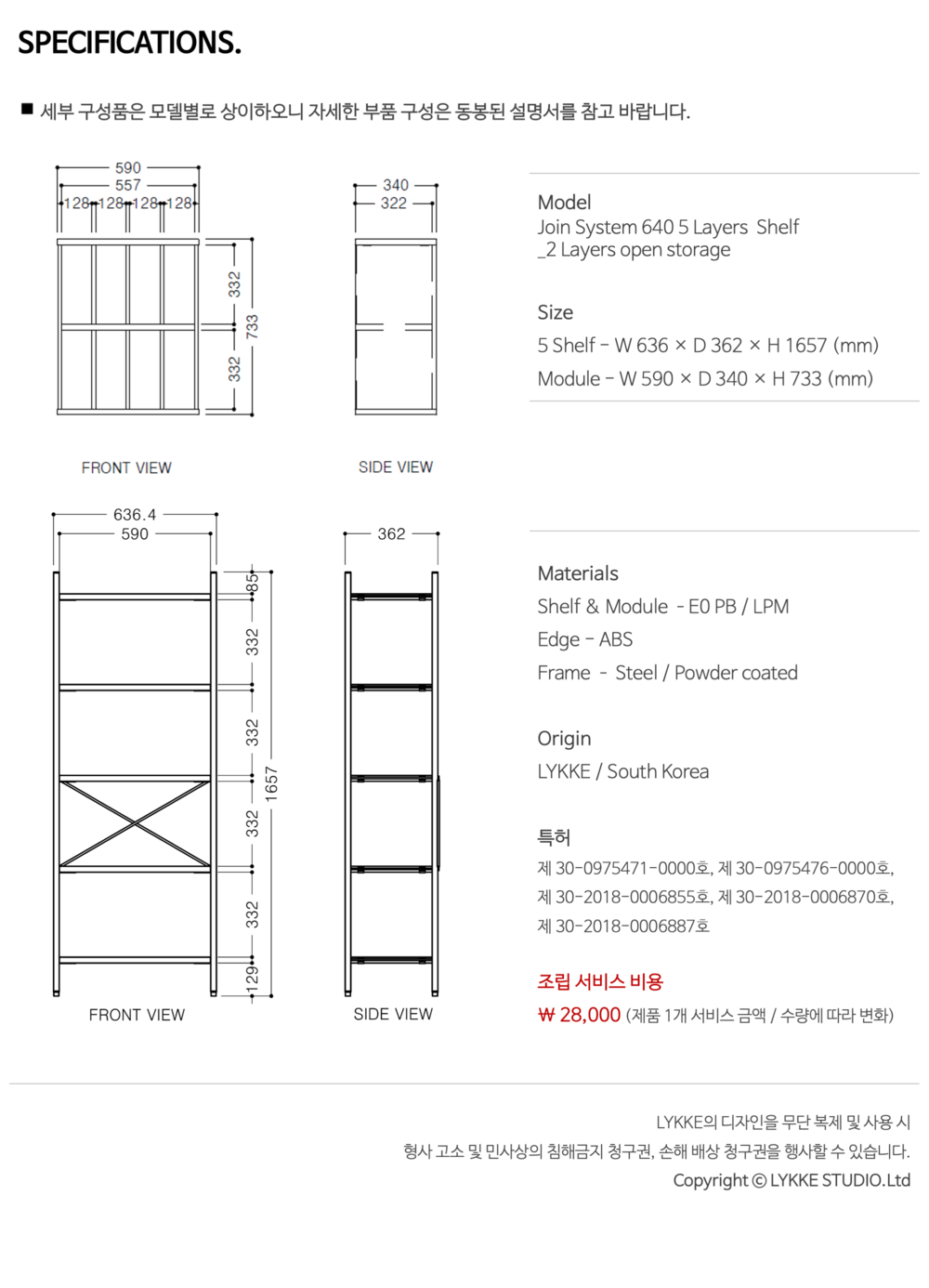 조인 시스템 640 5단 선반장(2단 오픈 수납장)