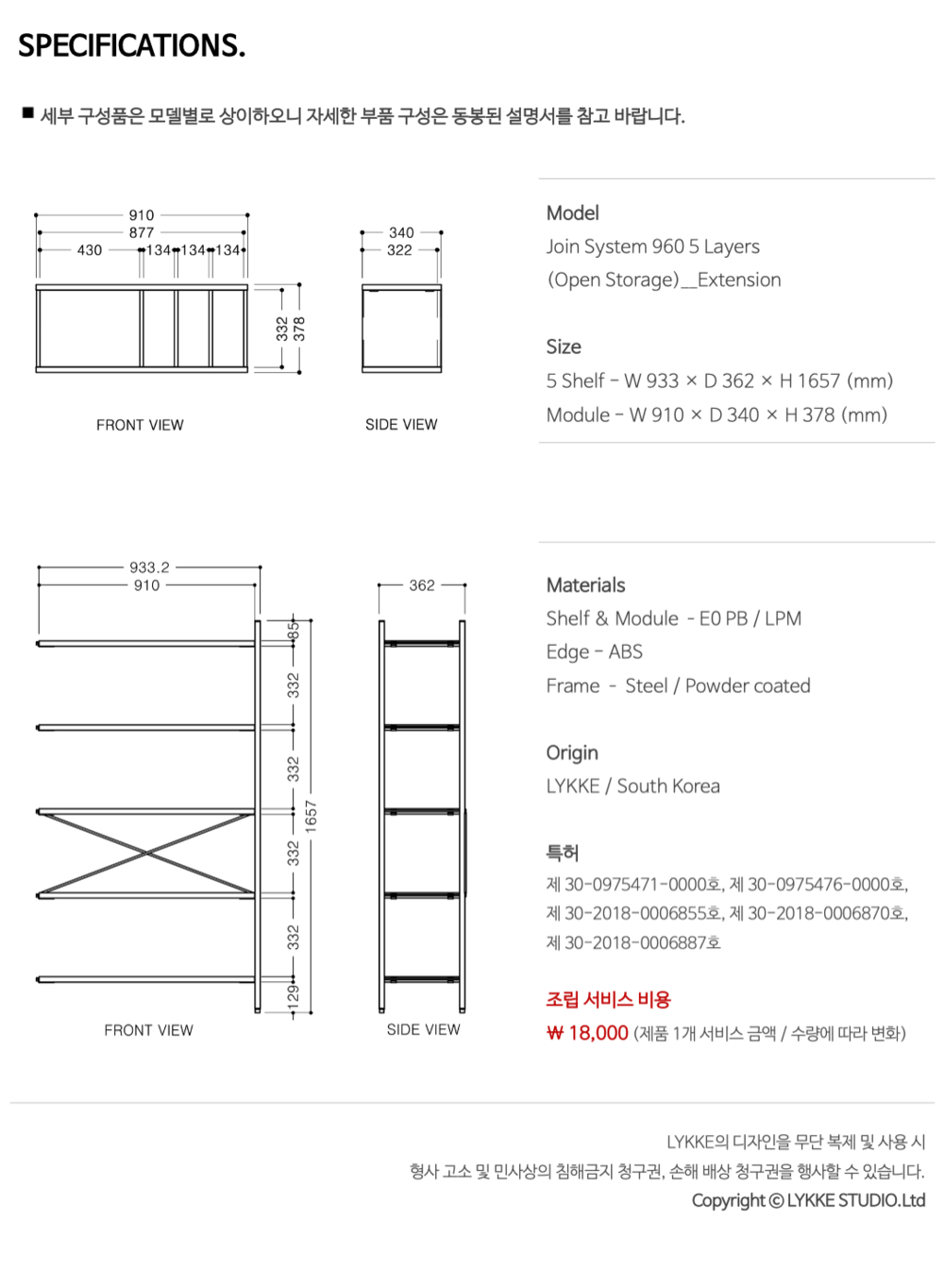 조인 시스템 960 5단 선반장(오픈 수납장)_연결