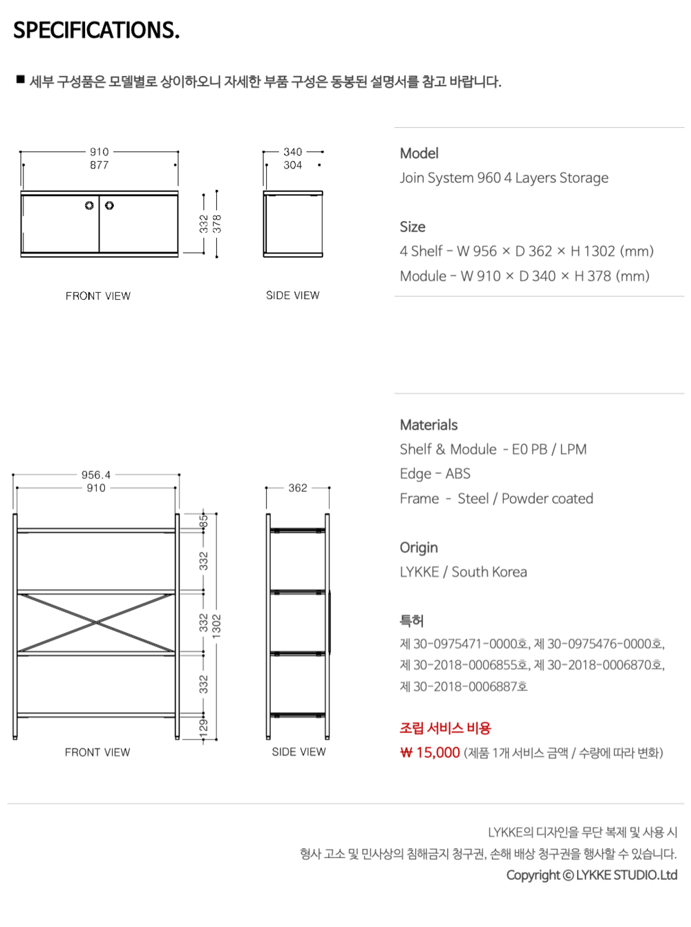 조인 시스템 960 4단 선반장(수납장)