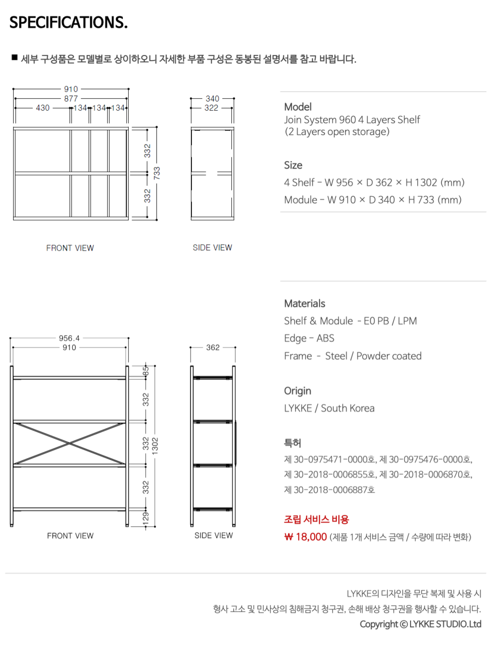 조인 시스템 960 4단 선반장(2단 오픈 수납장)