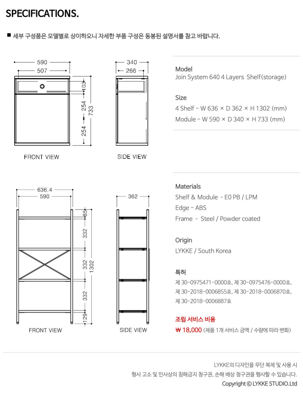 조인 시스템 640 4단 선반장(수납장)