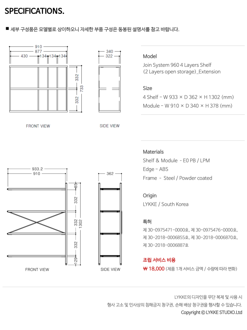 조인 시스템 960 4단 선반장(2단 오픈 수납장)_연결형