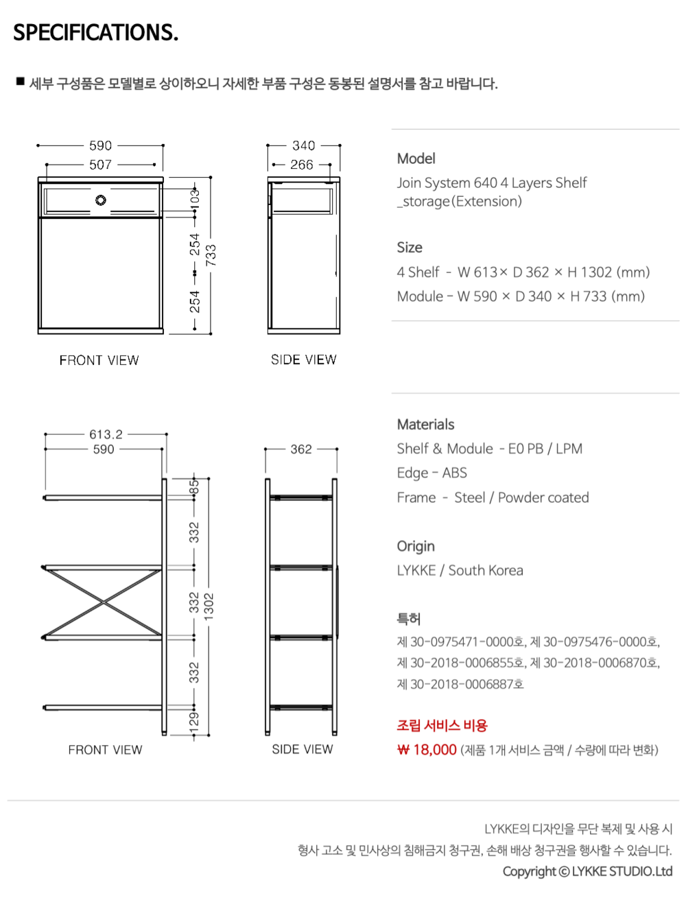 조인 시스템 640 4단 선반장(수납장)_연결형