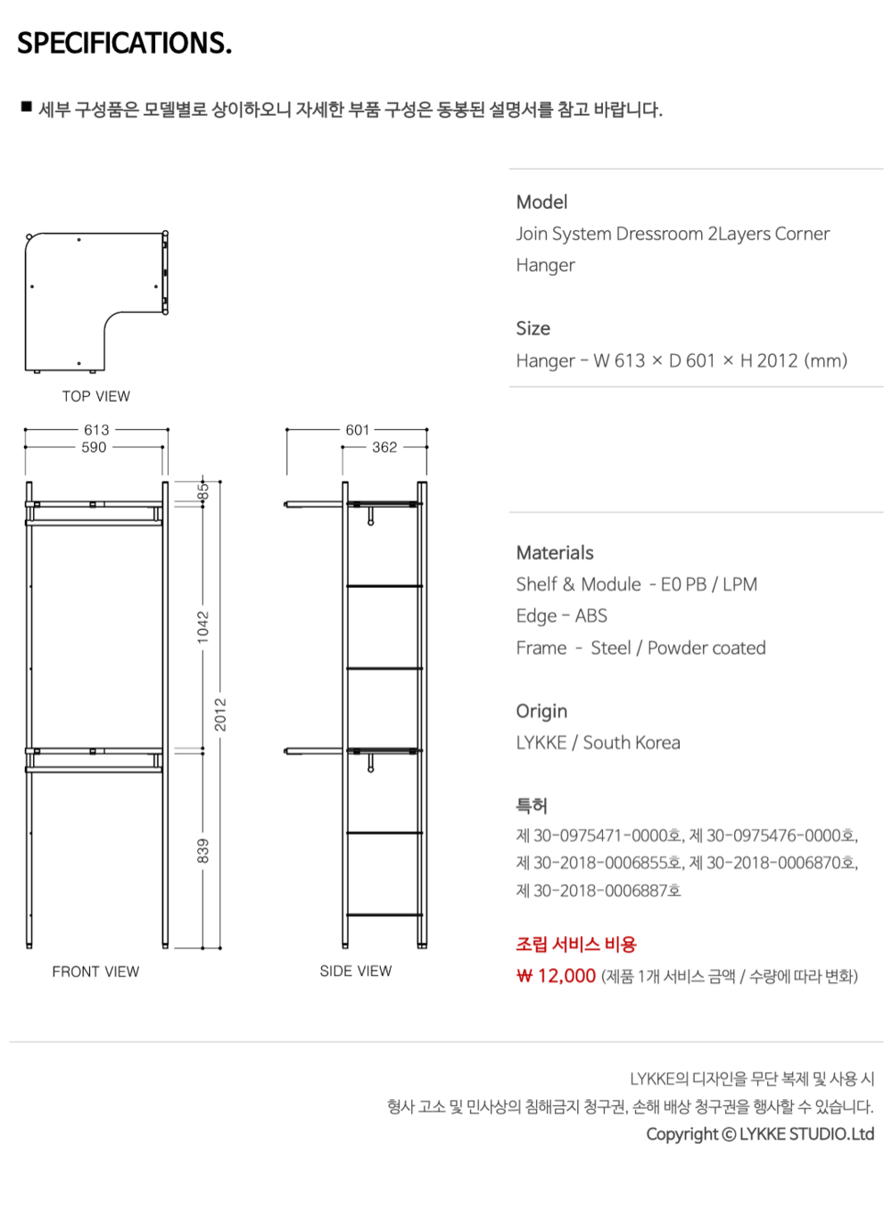 조인 시스템 6단 2단 코너 행거 선반장_연결형