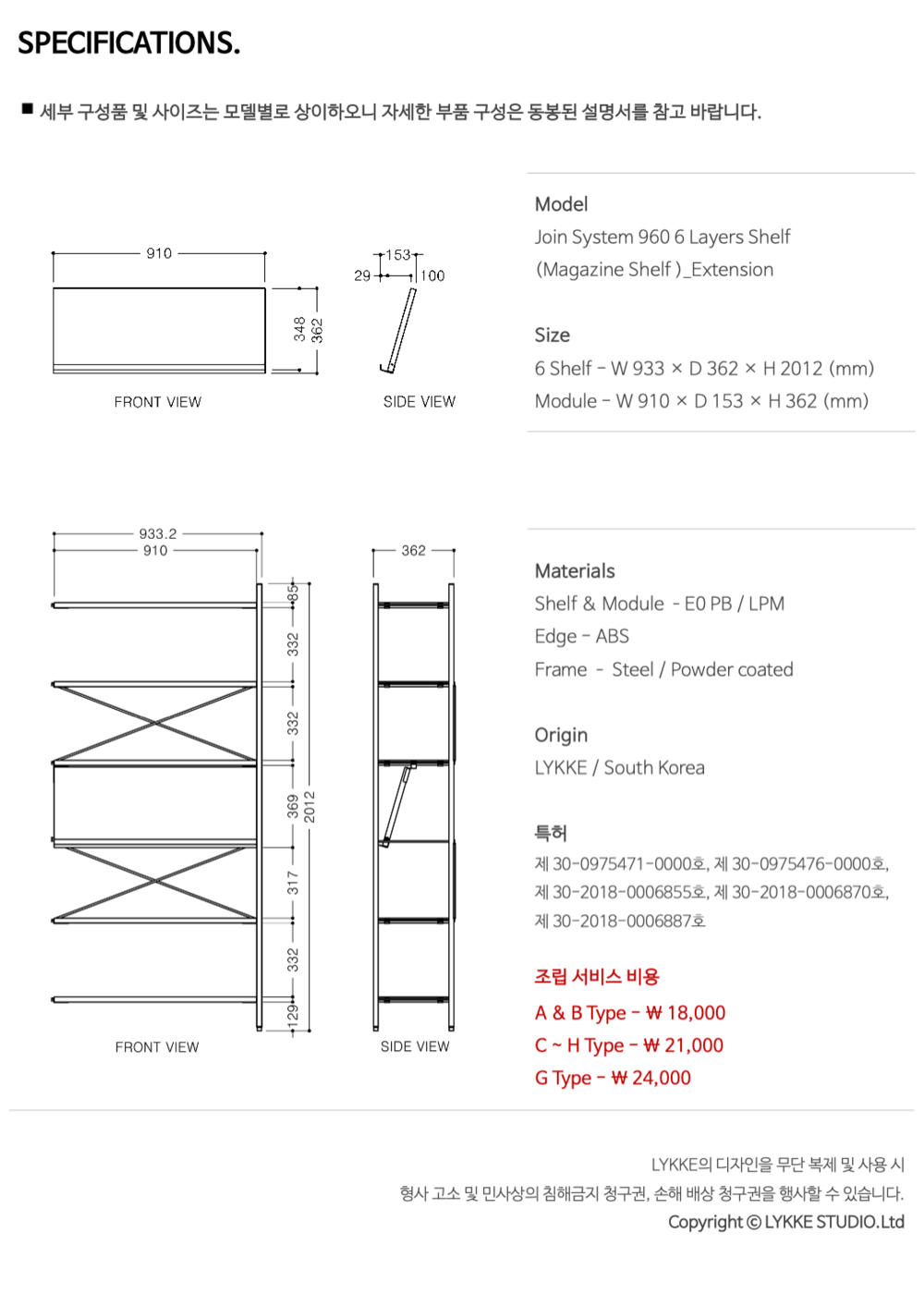 조인 시스템 960 6단 선반장(매거진 선반)_연결형