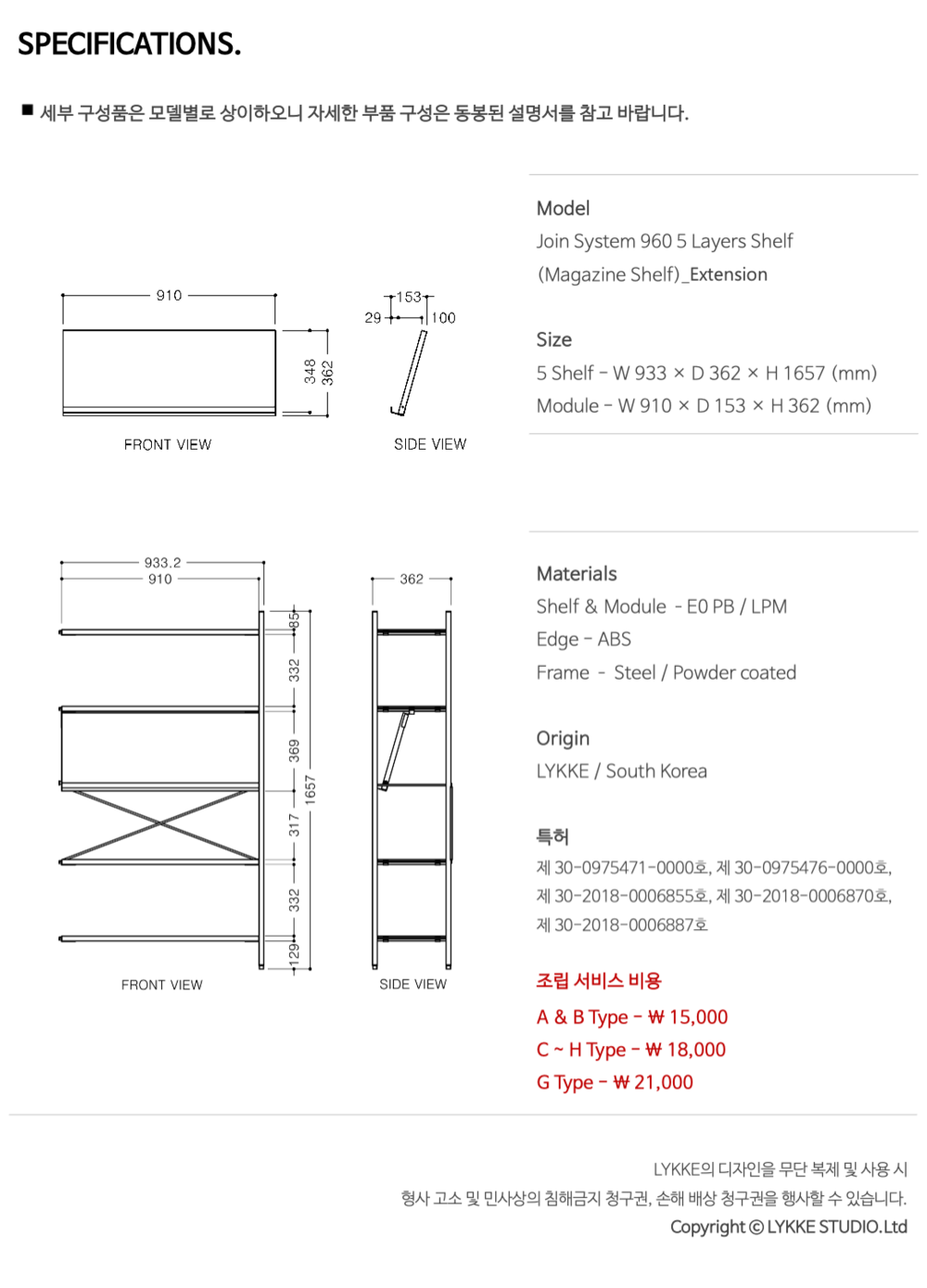 조인 시스템 960 5단 선반장(매거진 선반)_연결형
