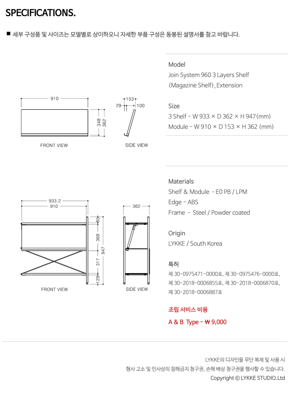 조인 시스템 960 3단 선반장(매거진 선반)_연결형