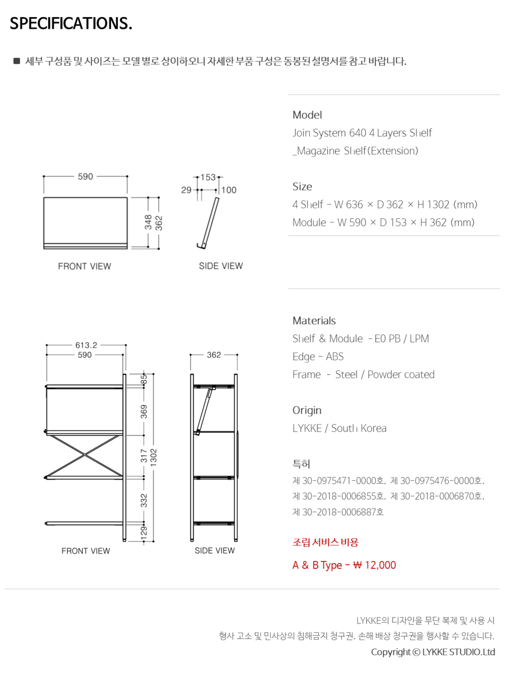 조인 시스템 640 4단 선반장(매거진 선반)_연결형