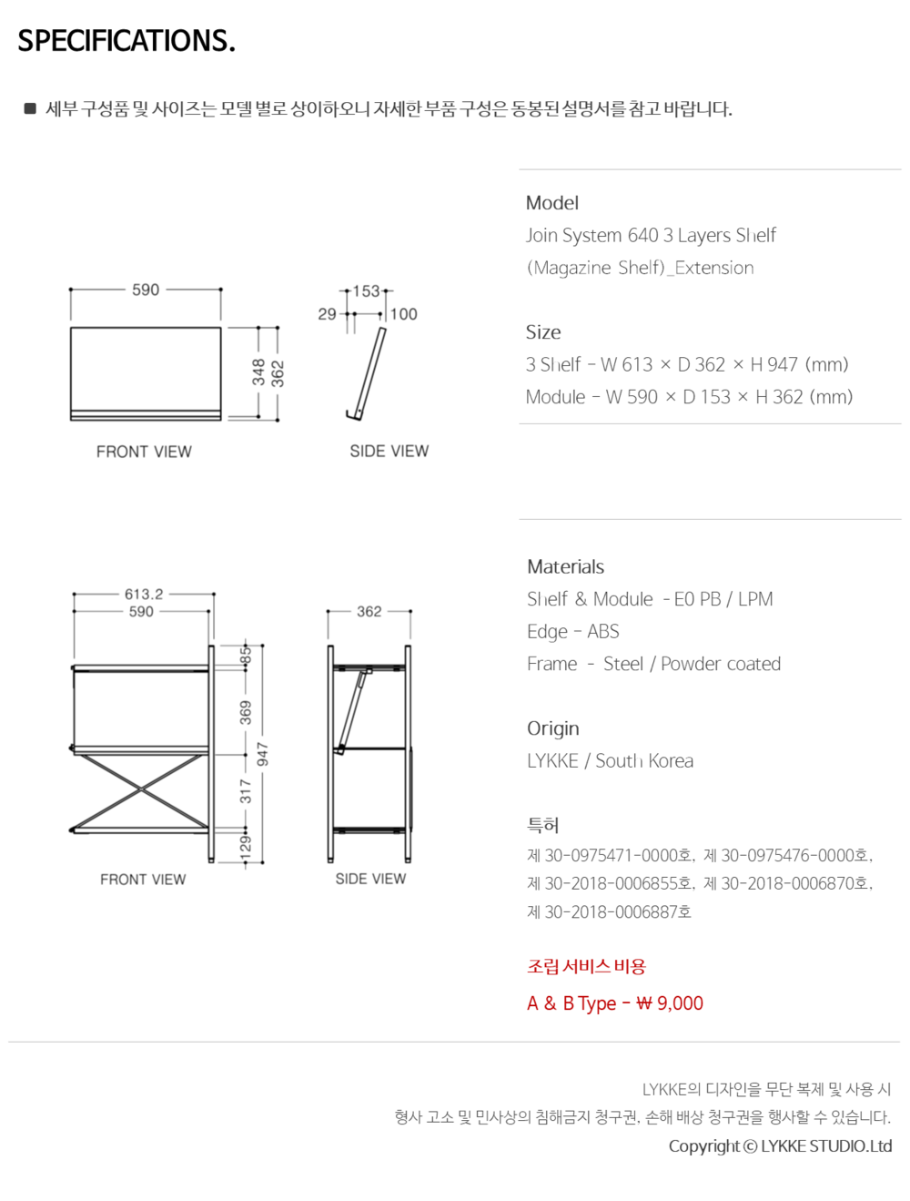 조인 시스템 640 3단 선반장(매거진 선반)_연결형
