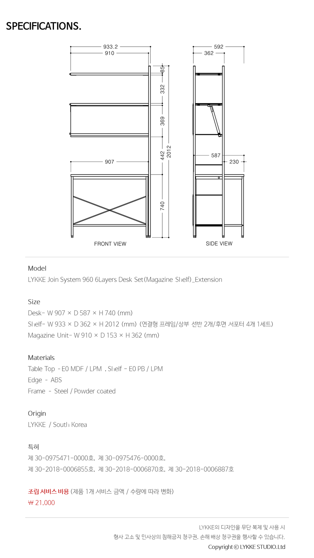 조인 시스템 960 6단 데스크 세트(매거진선반)_연결형