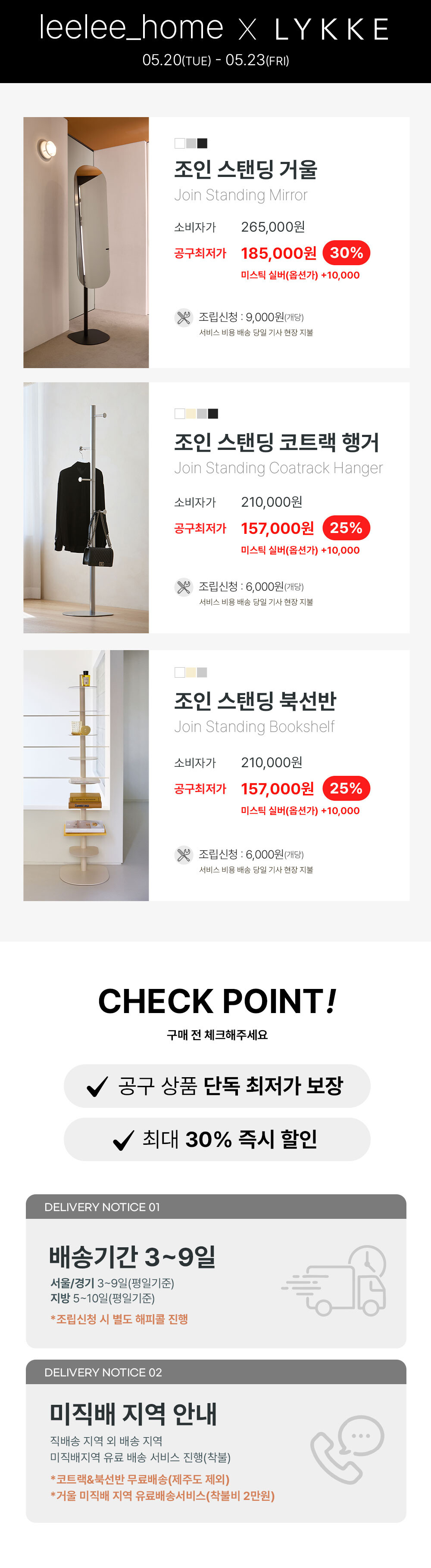 (리리홈 공동구매) 조인 스탠딩 거울/코트랙/북선반