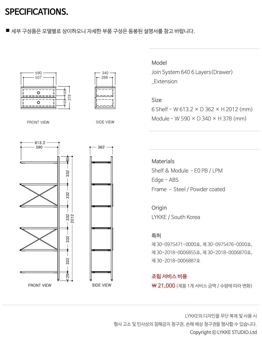 조인 시스템 640 6단 선반장(서랍장)_연결형