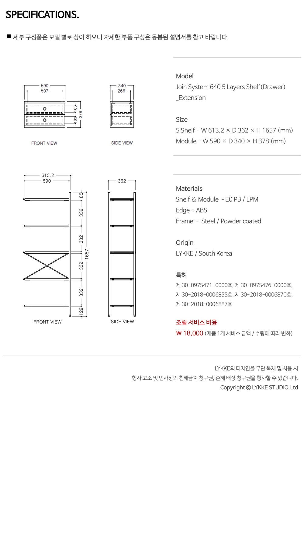 조인 시스템 640 5단 선반장(서랍장)_연결형
