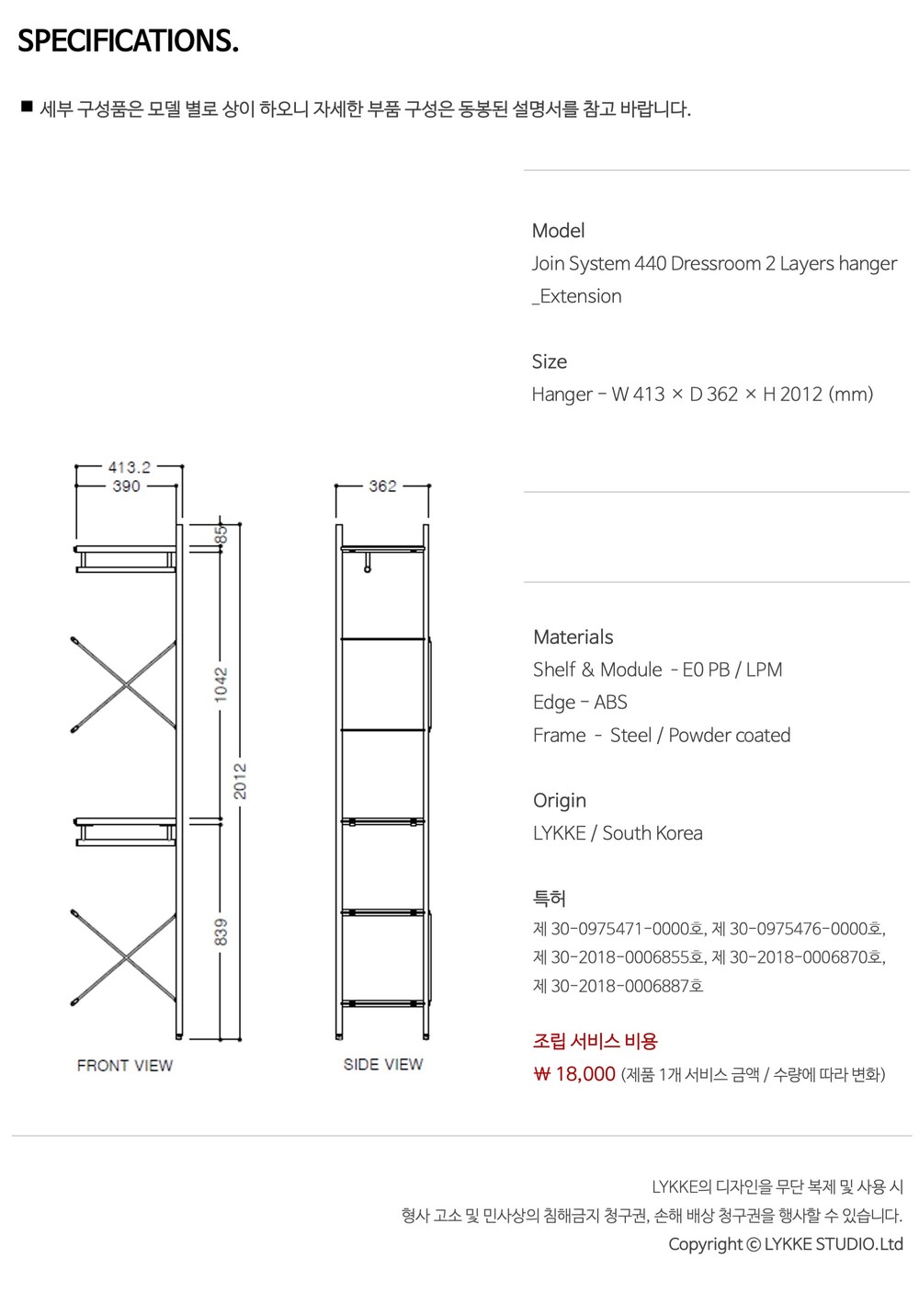 조인 시스템 440 드레스룸 2단 행거(연결형)