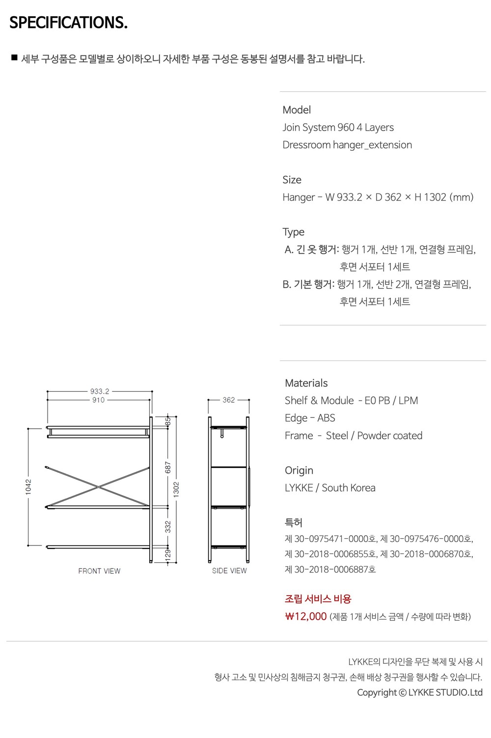 조인 시스템 960 드레스룸 4단 로우행거(연결형) /2 Types