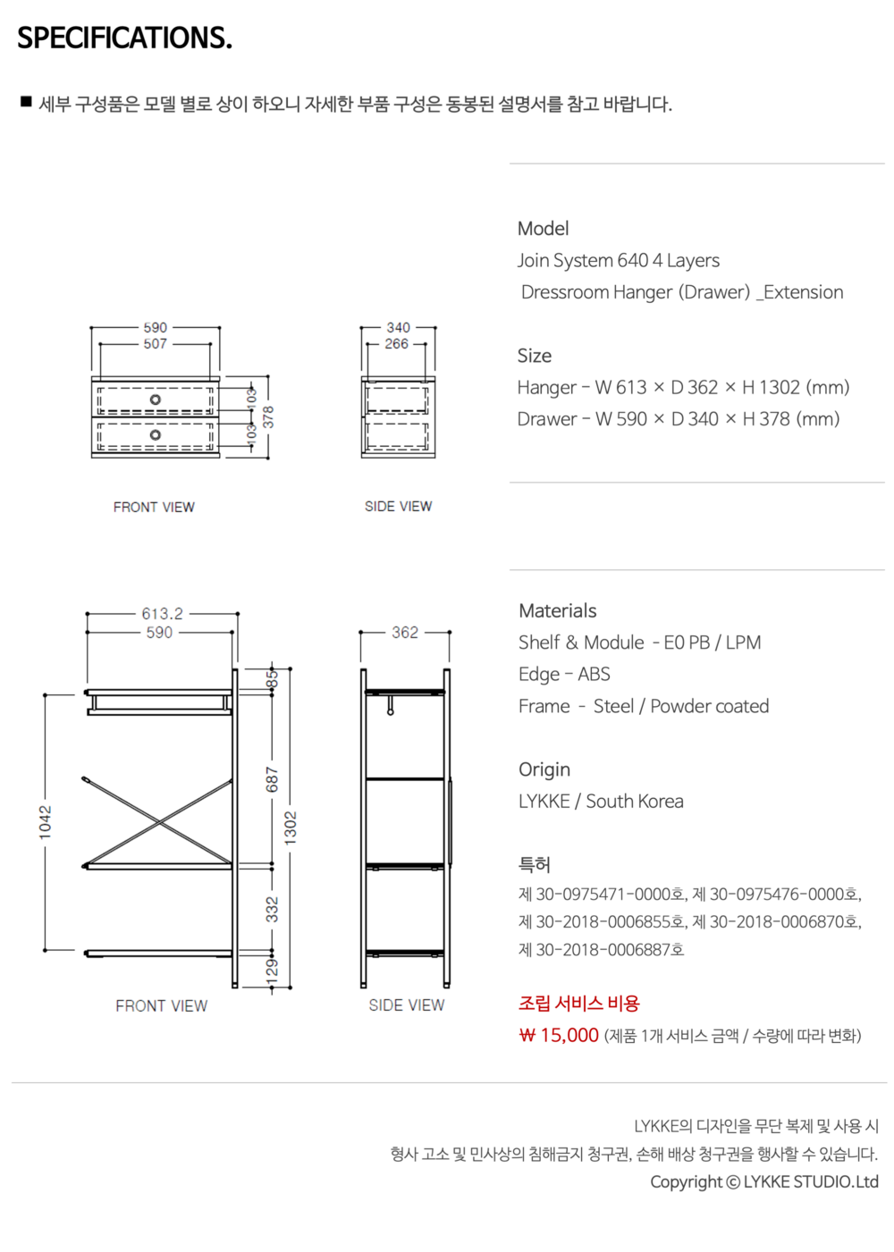 조인 시스템 640 드레스룸 4단 로우행거(서랍형)_연결형